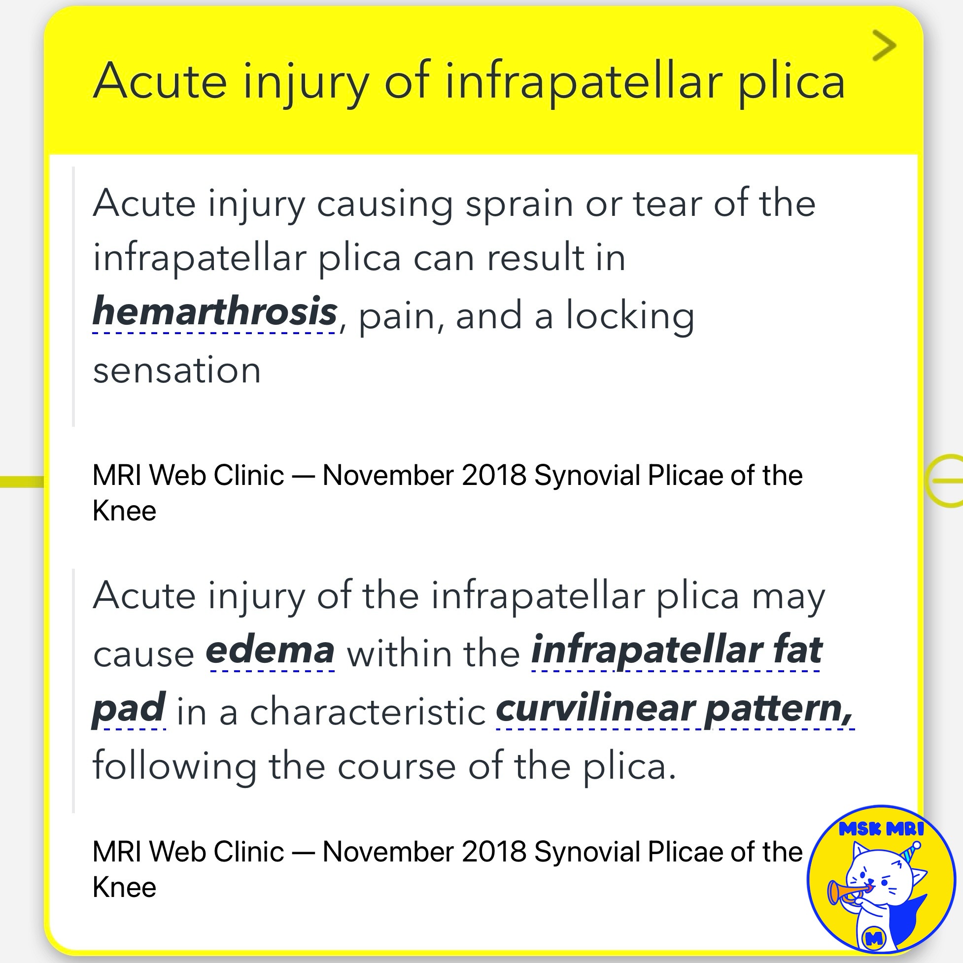 - MRI Web Clinic — November 2018 Synovial Plicae of the Knee