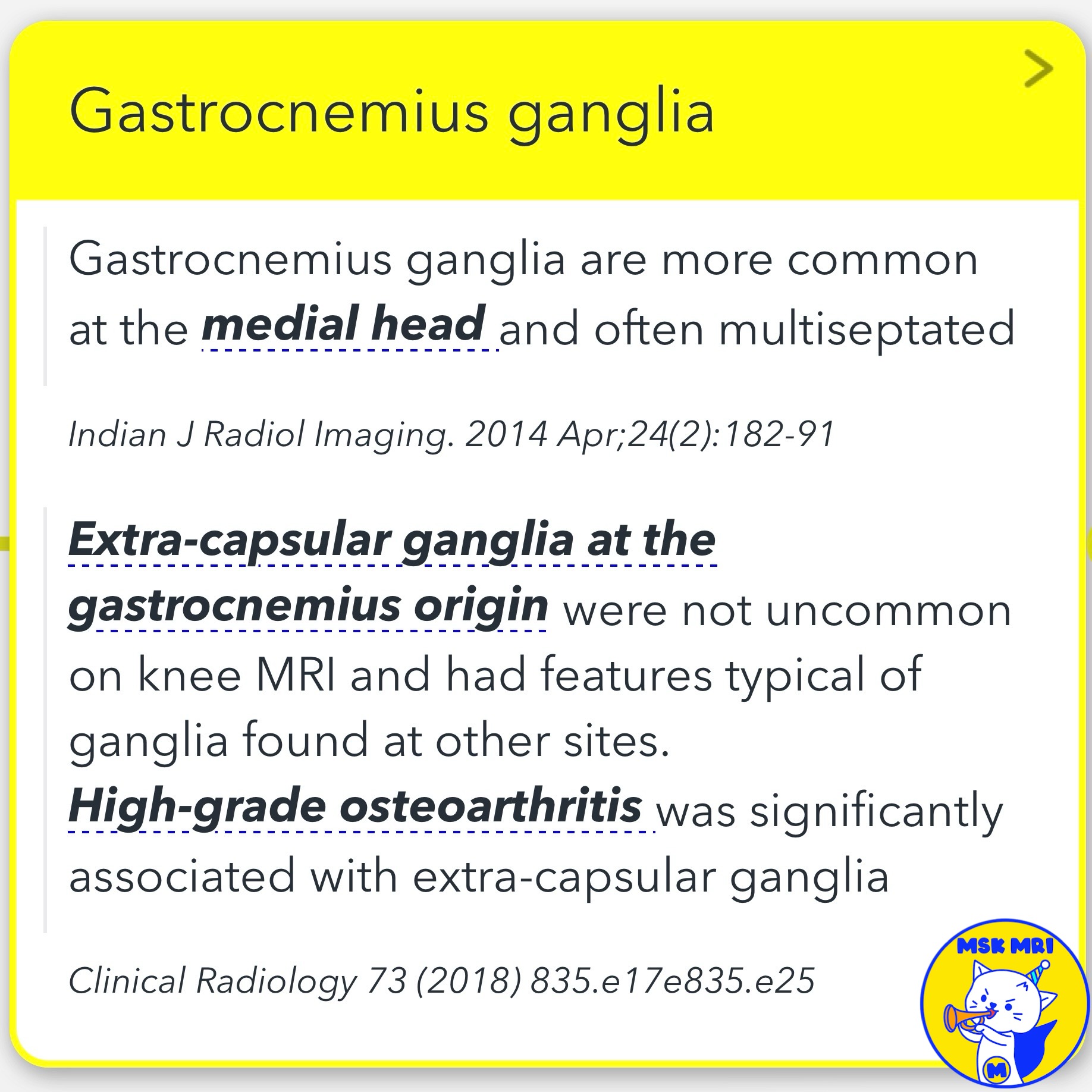 #GastrocnemiusGanglia, #KneeMRI, #HighGradeOsteoarthritis, #PCGU, #IntraCapsularGanglia, #ExtraCapsularGanglia, #GanglionDevelopment, #Radiology, #MusculoskeletalRadiology, #MedicalImaging