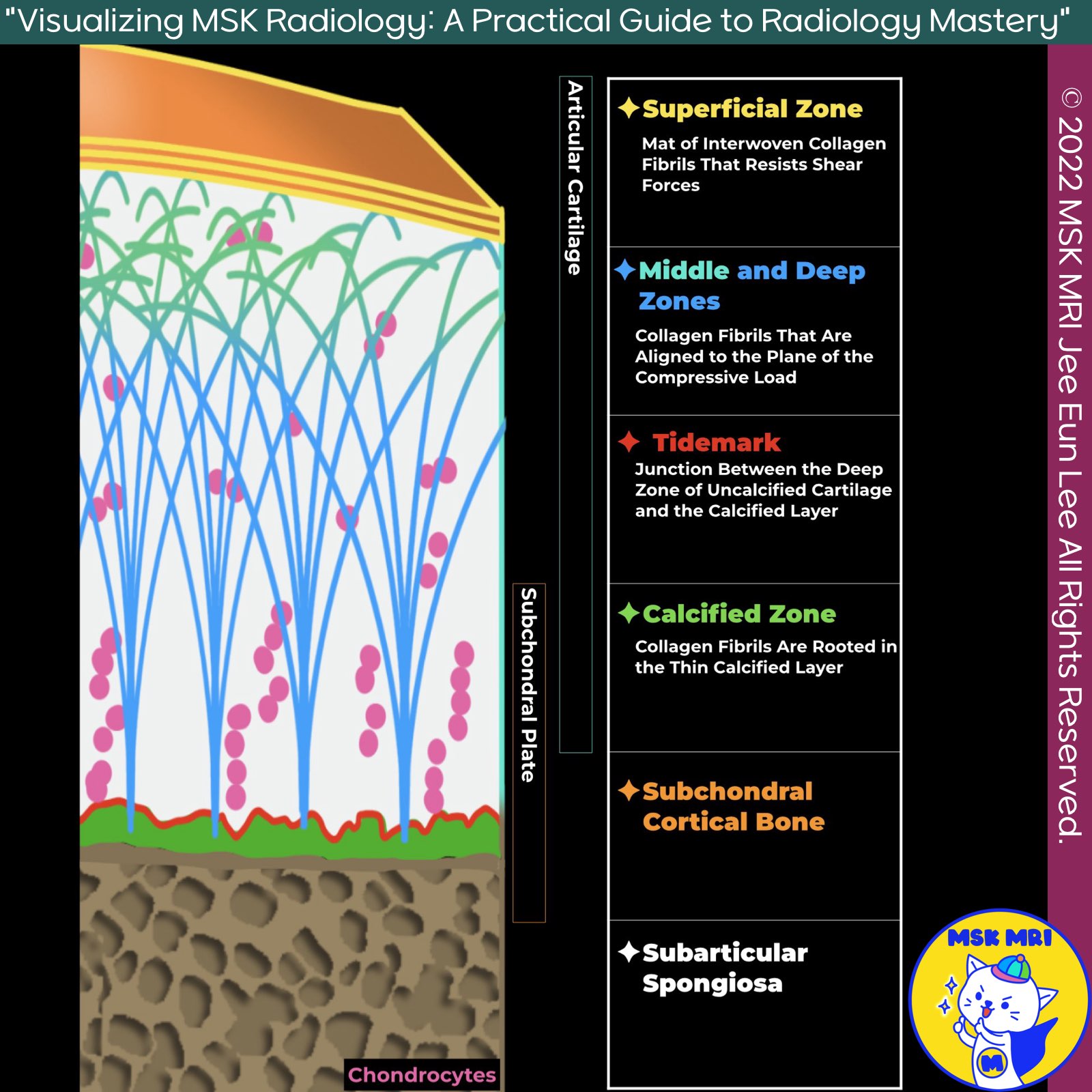 #ArticularCartilage, #OsteochondralUnit, #HyalineCartilage, #Chondrocytes, #ExtracellularMatrix, #SubchondralBone, #Tidemark, #Radiology, #CartilageHealth, #JointFunction