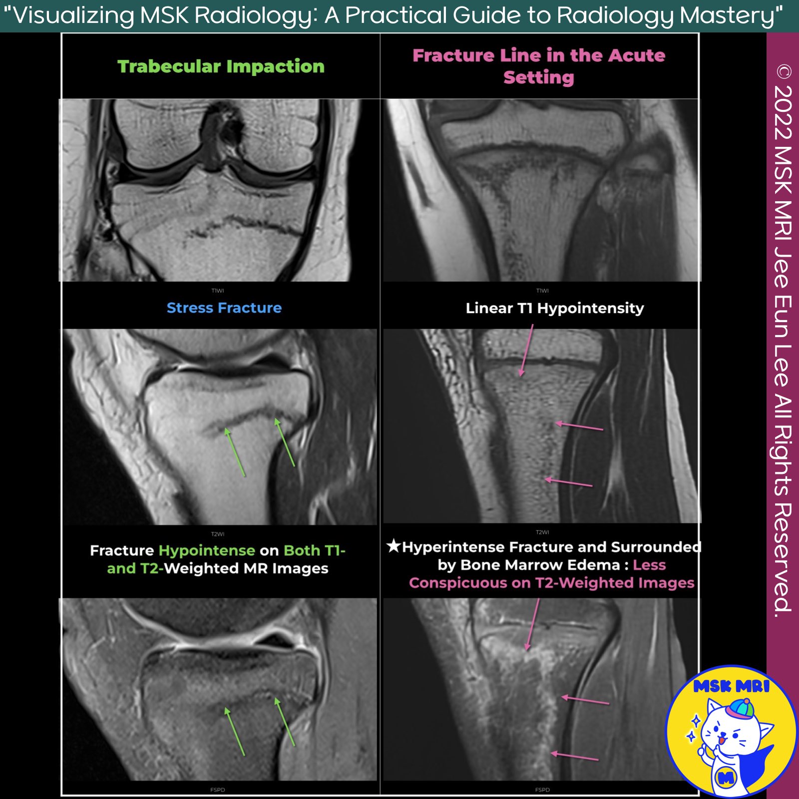 #MRI, #FractureLine, #T1Weighted, #T2Weighted, #BoneMarrowEdema, #TrabecularImpaction, #StressFractures, #Hypointensity, #Radiology, #AcuteSetting