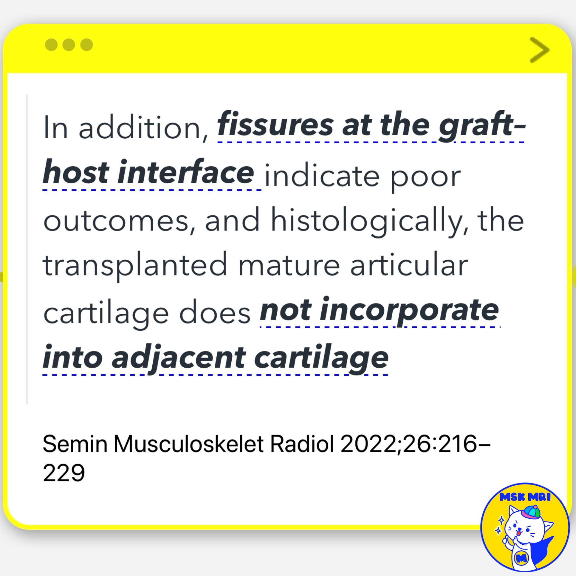 - Persistent subchondral BME or newly developed BME may indicate poor graft incorporation