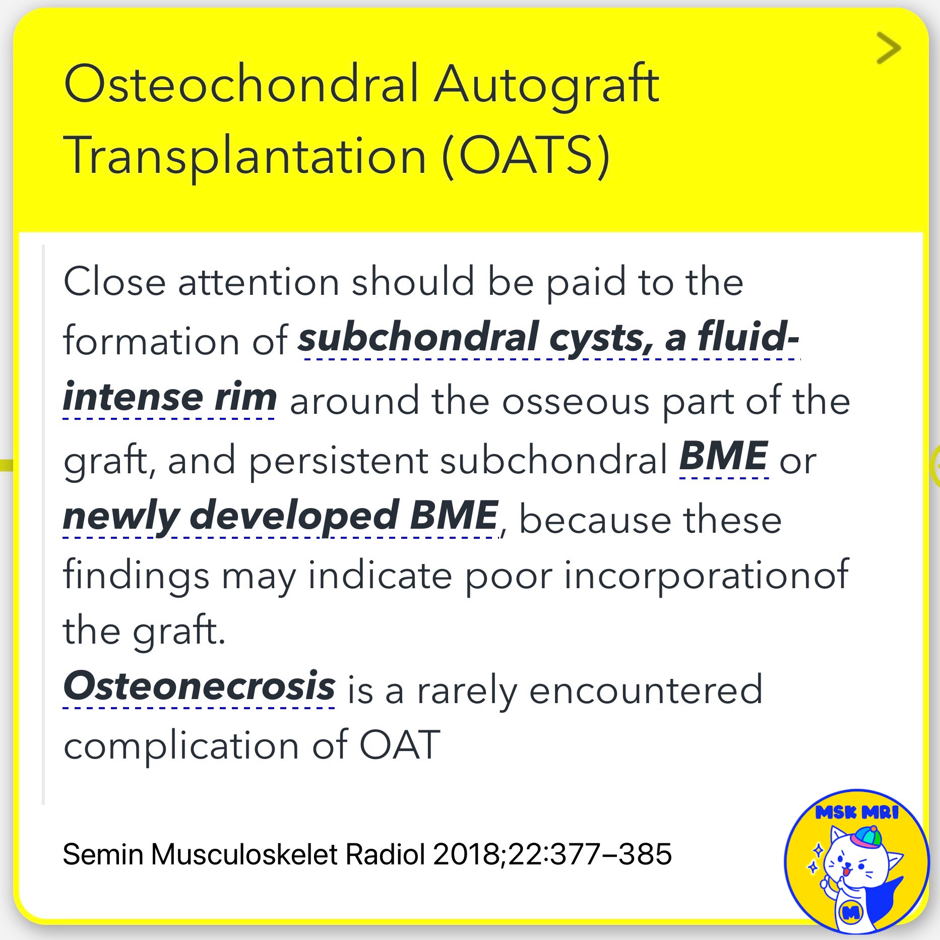 #OATS, #OsteochondralAutograft, #CartilageTransplantation, #SubchondralCysts, #BoneMarrowEdema, #DegenerativeChanges, #Histology, #ClinicalOutcomes, #GraftIntegration, #Osteonecrosis