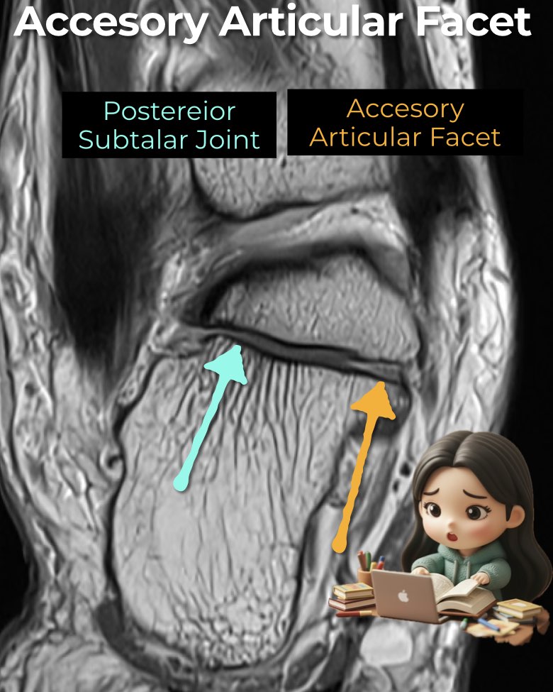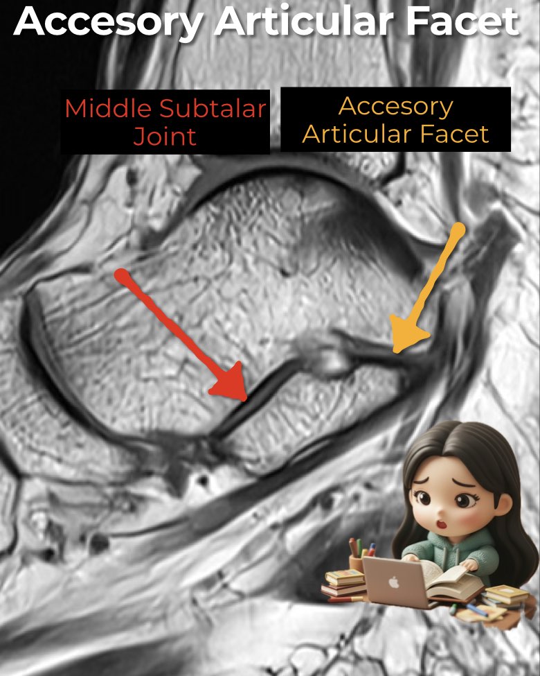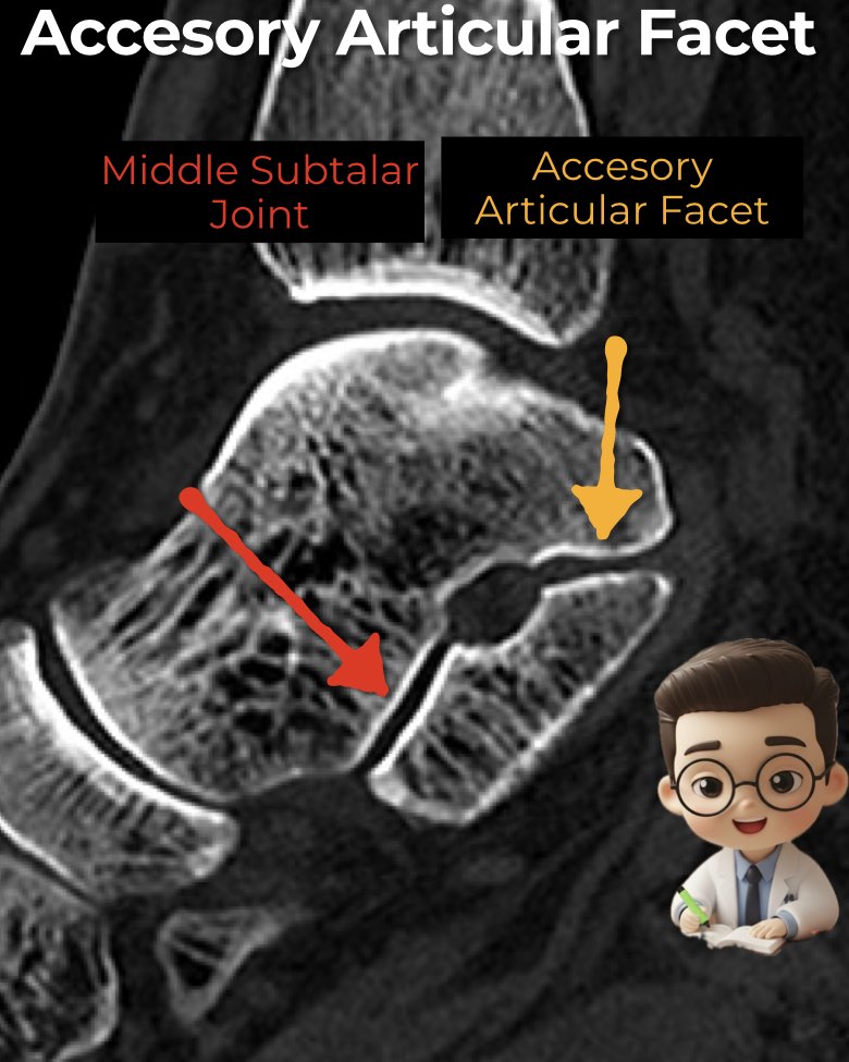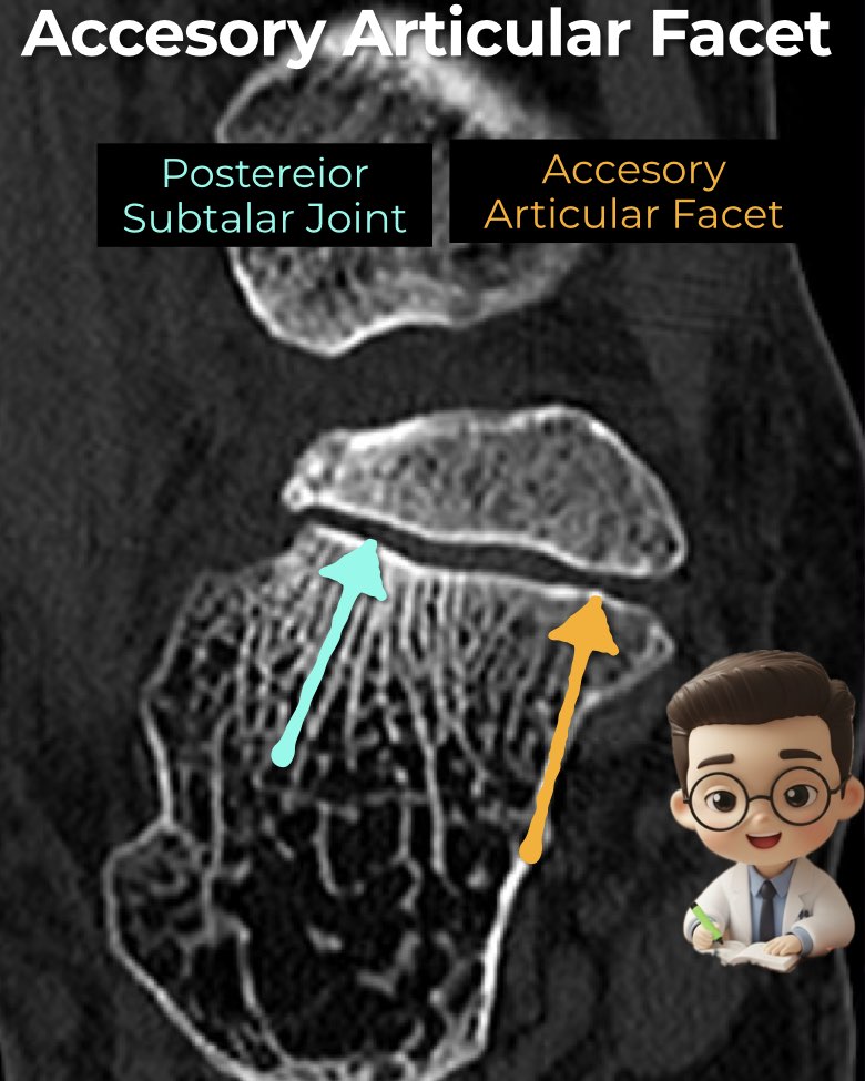 Accessory articular facets are normal anatomic variants of the talocalcaneal joint but can mimic or associate with pathology.