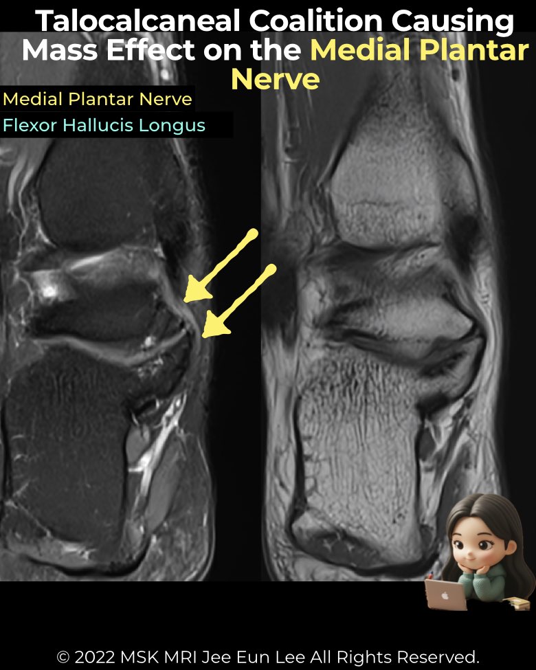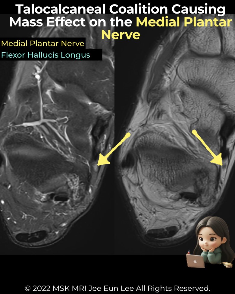 #Radiology #MSKMRI #FootMRI #TalocalcanealCoalition #TarsalTunnelSyndrome #MedialPlantarNerve #FHL #OrthopedicImaging #MRIteaching #RadiologistLife #MedicalEducation