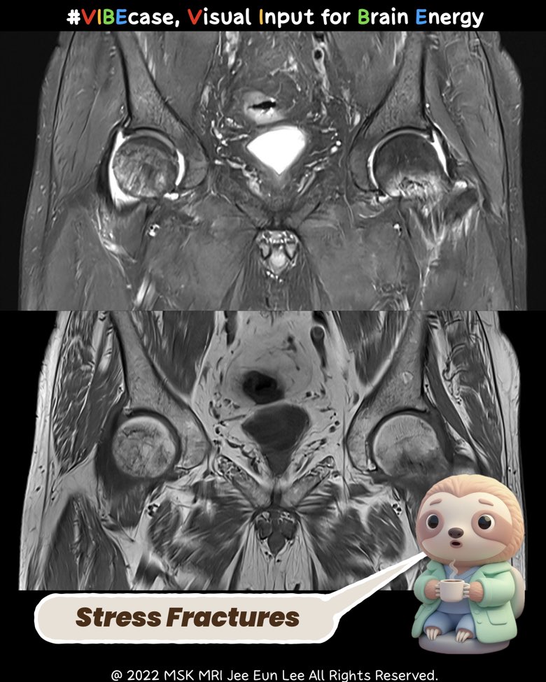 #StressFracture, #FemoralNeck, #FemoralHead, #MRIImaging, #MSKRadiology, #BoneMarrowEdema, #OccultFracture, #Orthopaedics, #RadiologyEducation, #CTvsMRI, #Vibecase,
