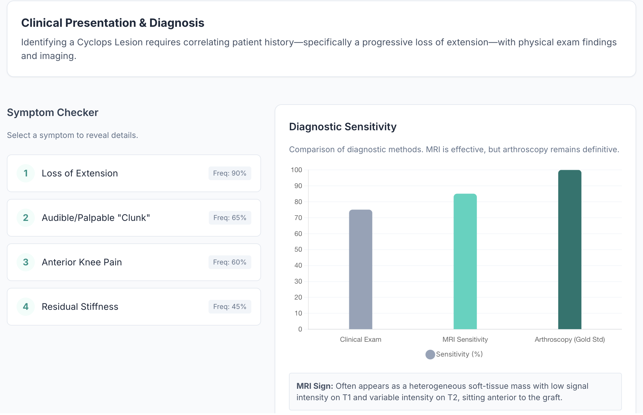 Cyclops lesion, or localized anterior arthrofibrosis, is one of the most common and most easily overcalled findings after ACL reconstruction.