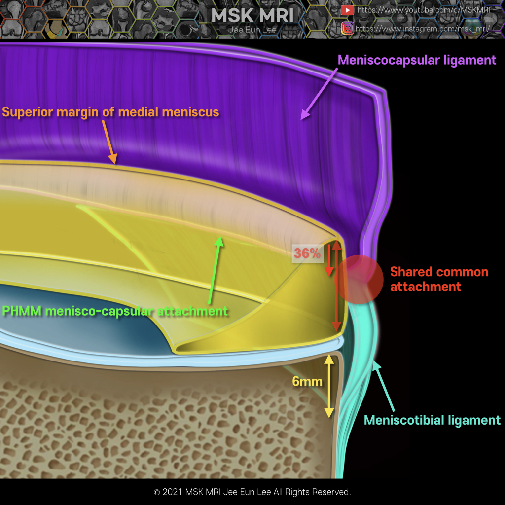 The meniscocapsular and meniscotibial ligament (MTL) merge to form a common attachment.