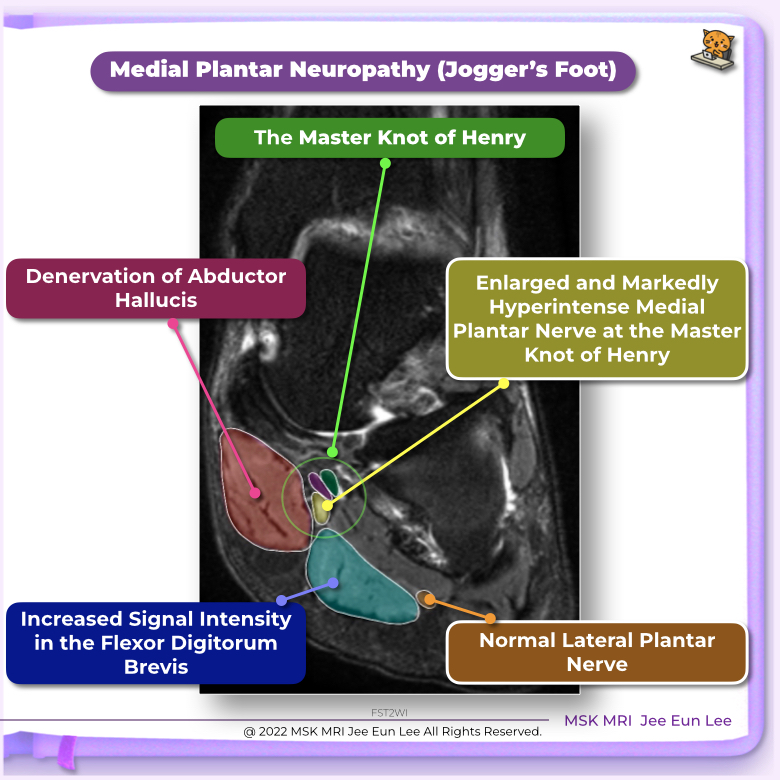 Jogger’s foot can develop at the Henry knot owing to repetitive trauma to the nerve, especially while running with increased heel valgus and foot pronation.
