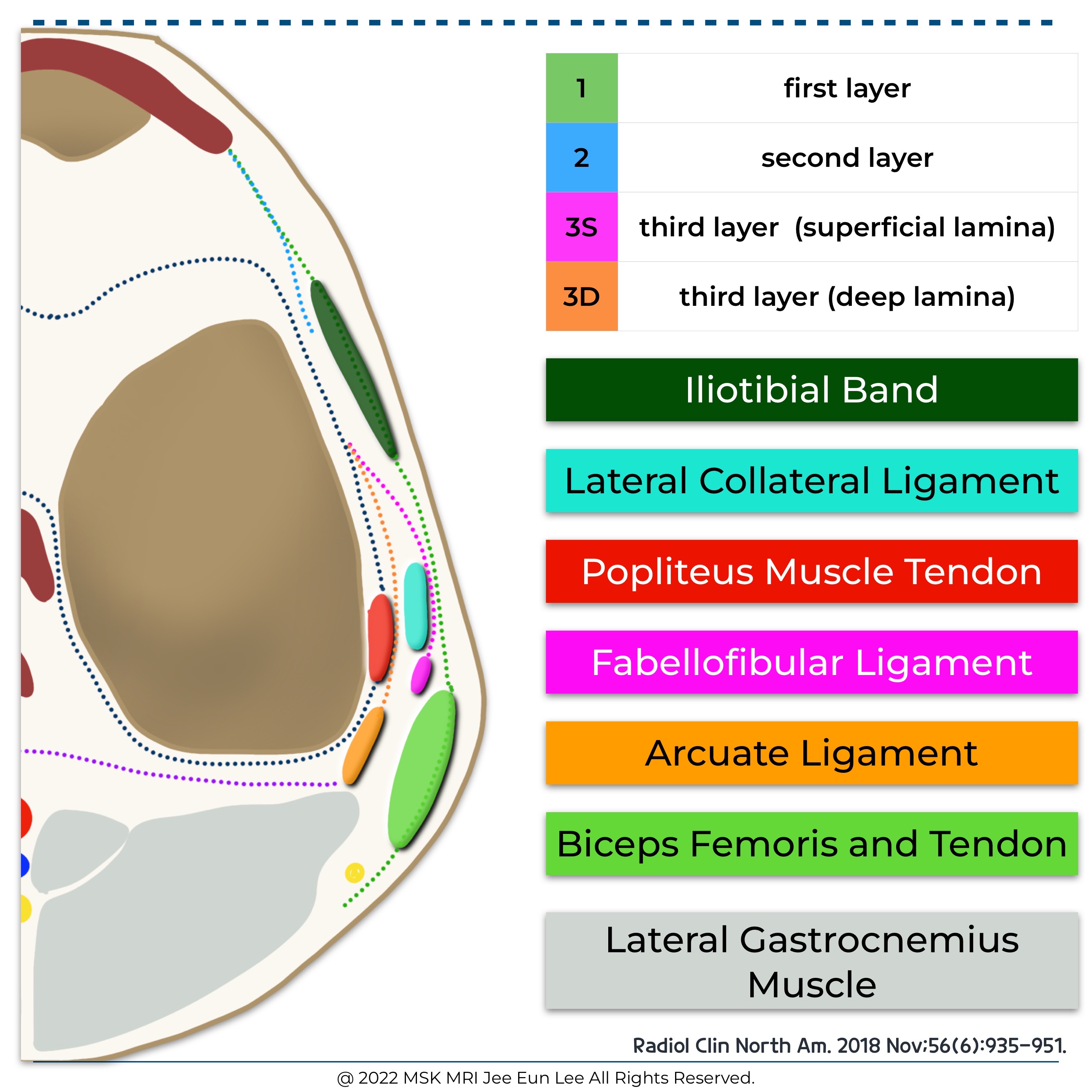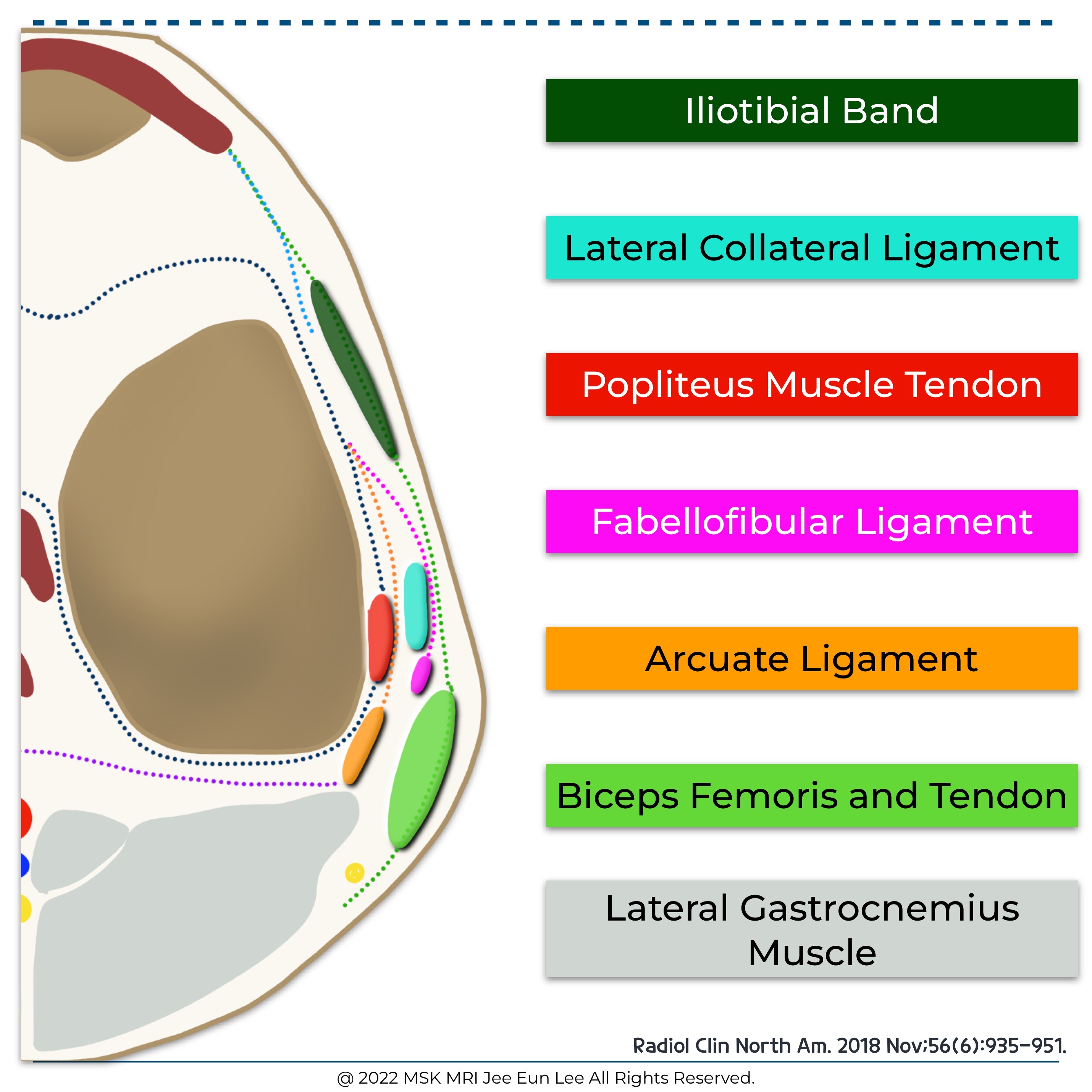 posterolateral corner injury, popliteus tendon,슬와근, knee mri, anatomy,lateral collateral ligament, fibular collateral ligament, biceps femoris tendon, conjoined tendon, arcuate ligament,fabellofibular ligament,popliteofibular ligament, biceps femoris, posterolateral corner, Iliotibial Band