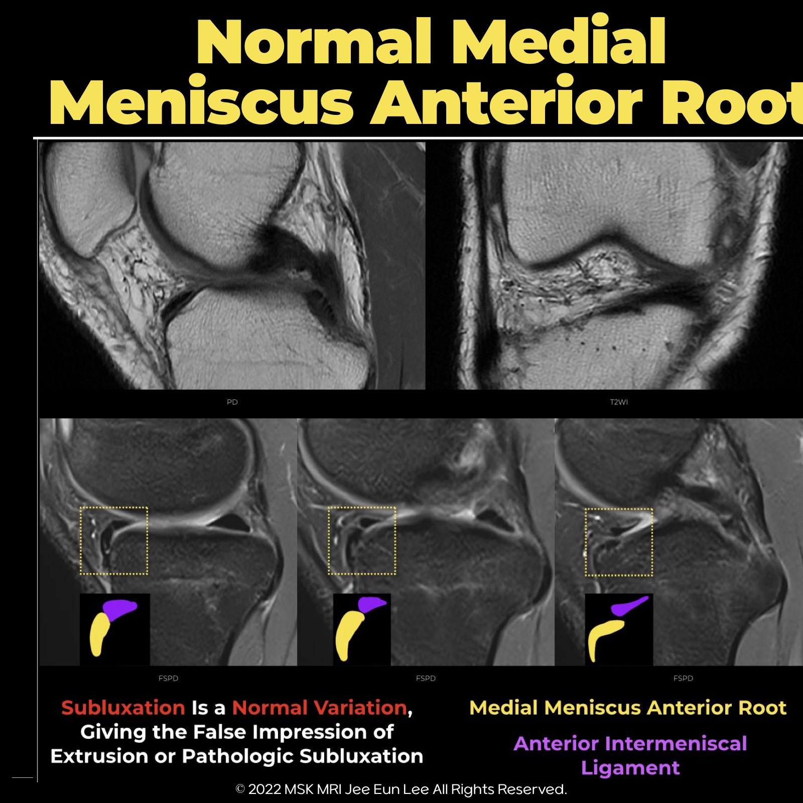 It's important to note that subluxation of the medial meniscus anterior root is normal and doesn't necessarily indicate a pathological condition.