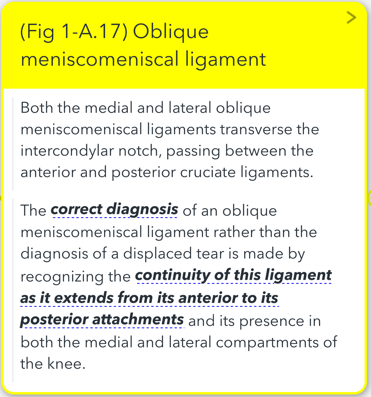 - (Fig 1-A.17) Oblique meniscomeniscal ligament