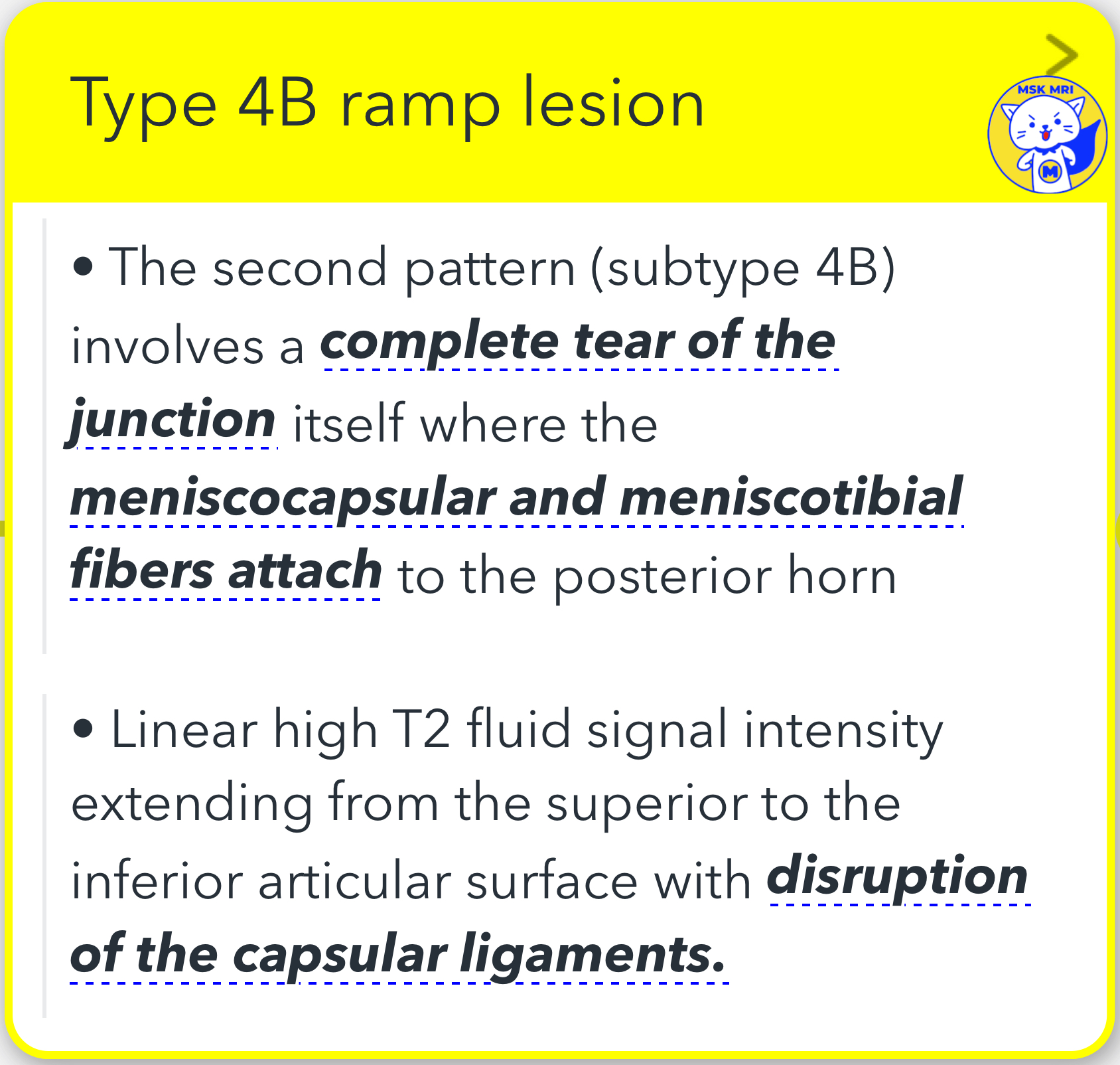 ❗️This pattern involves a complete tear at the junction where the meniscocapsular and meniscotibial fibers attach to the posterior horn of the meniscus.