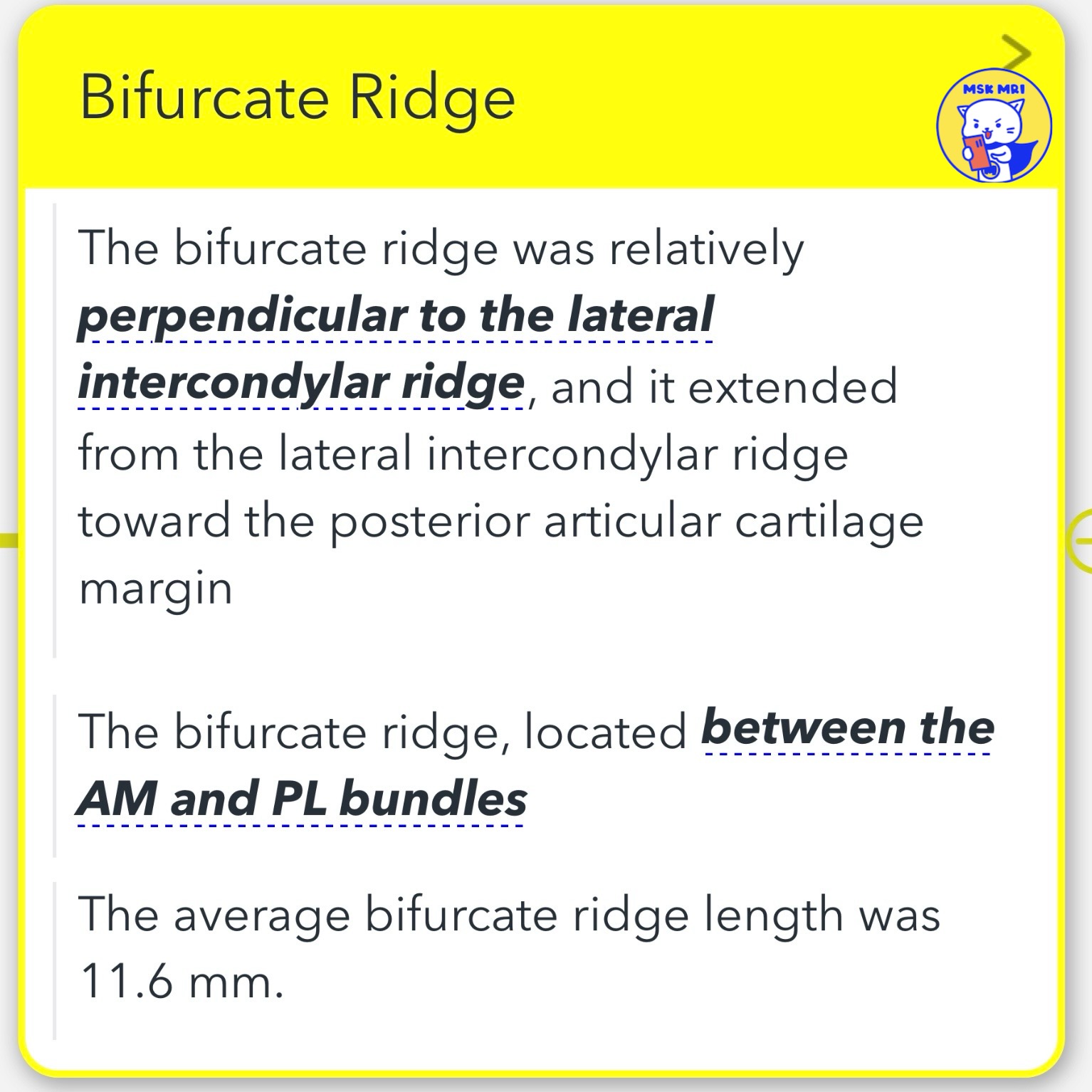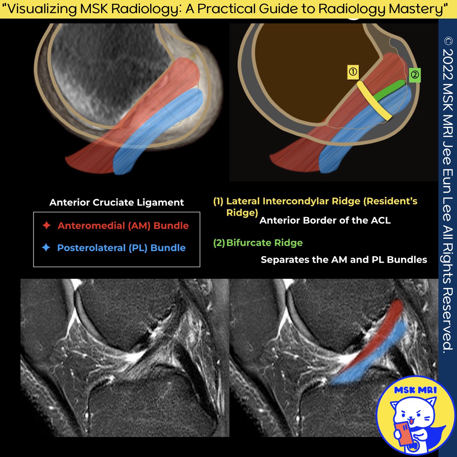 - Situated between the AM (anteromedial) and PL (posterolateral) bundles of the ACL, this ridge runs relatively perpendicular to the lateral intercondylar ridge.