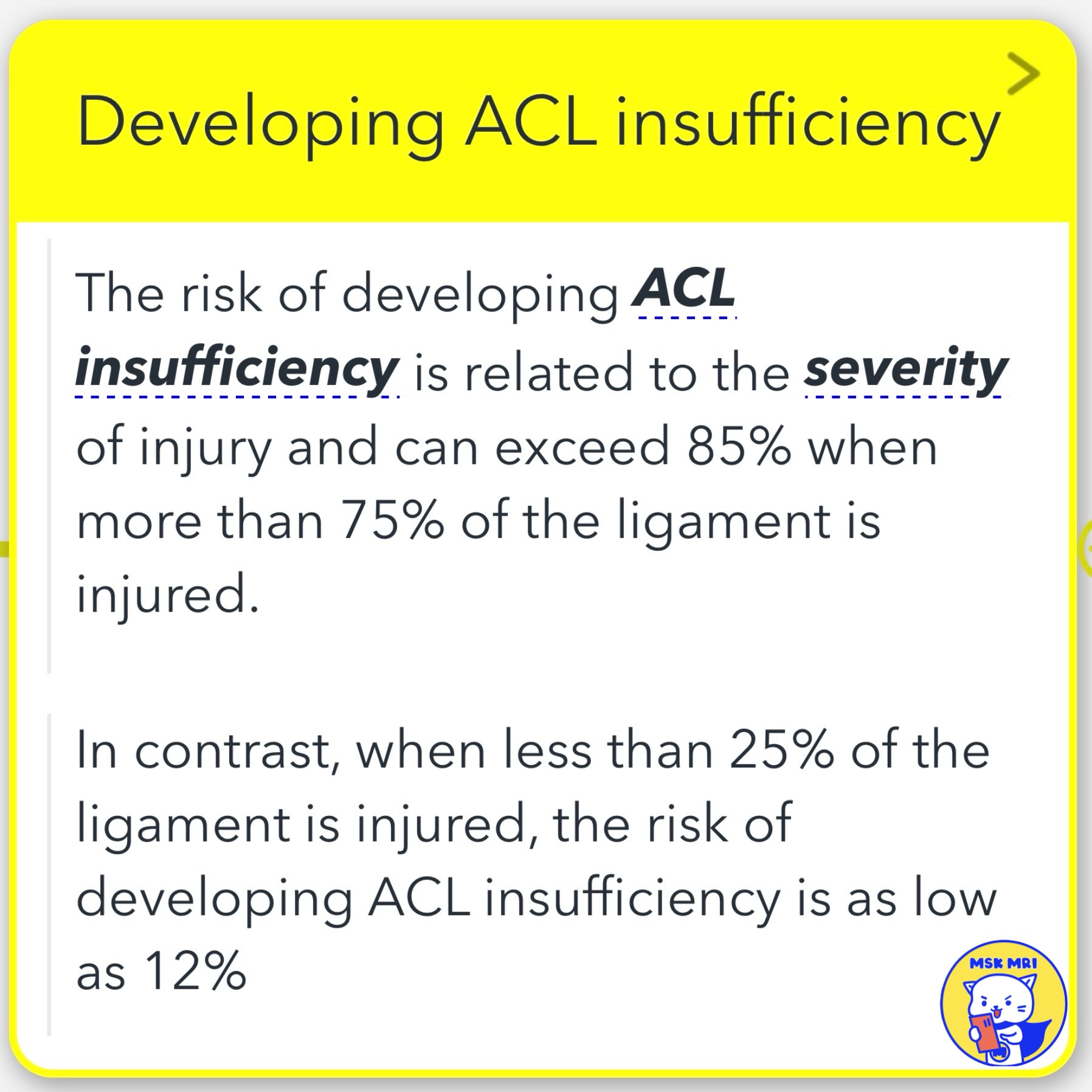 - The likelihood of developing ACL insufficiency closely correlates with the severity of the injury.