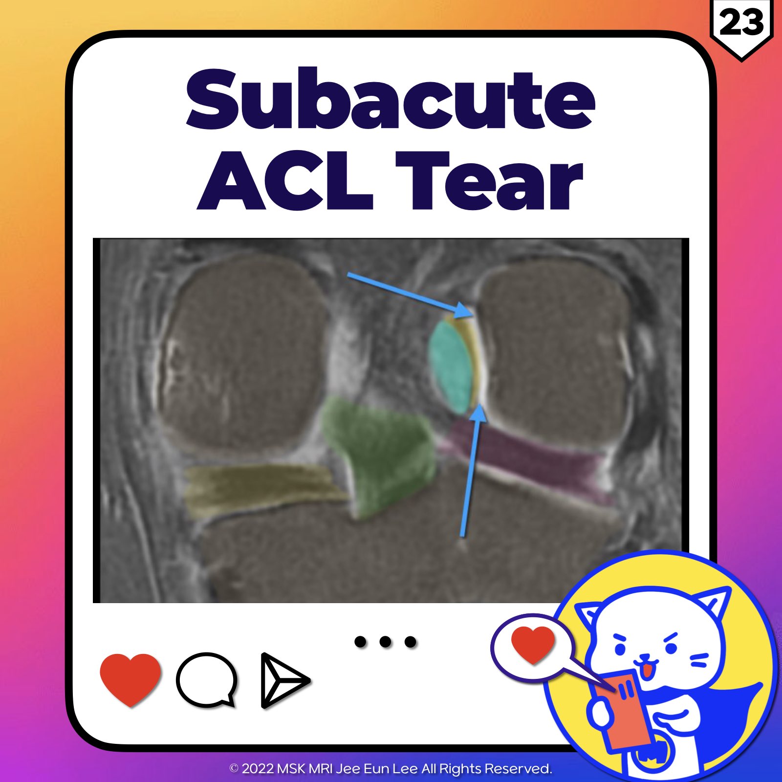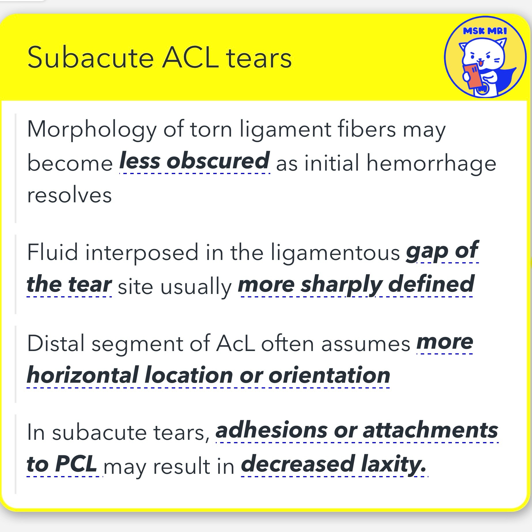 #VisualizingMSK #ACLinjuries #KneeMRI #ACLtear #subacutetear #subacuteACLtear You may not distribute or commercially exploit the content. Nor may you transmit it or store it on any other website or other forms of the electronic retrieval system.