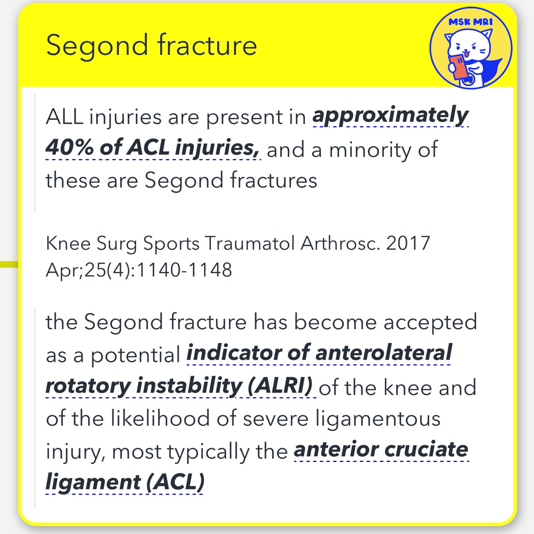 #VisualizingMSK #ACLinjuries #KneeMRI #ACLtear #avulsionfracture #Segondfracture #ALRI