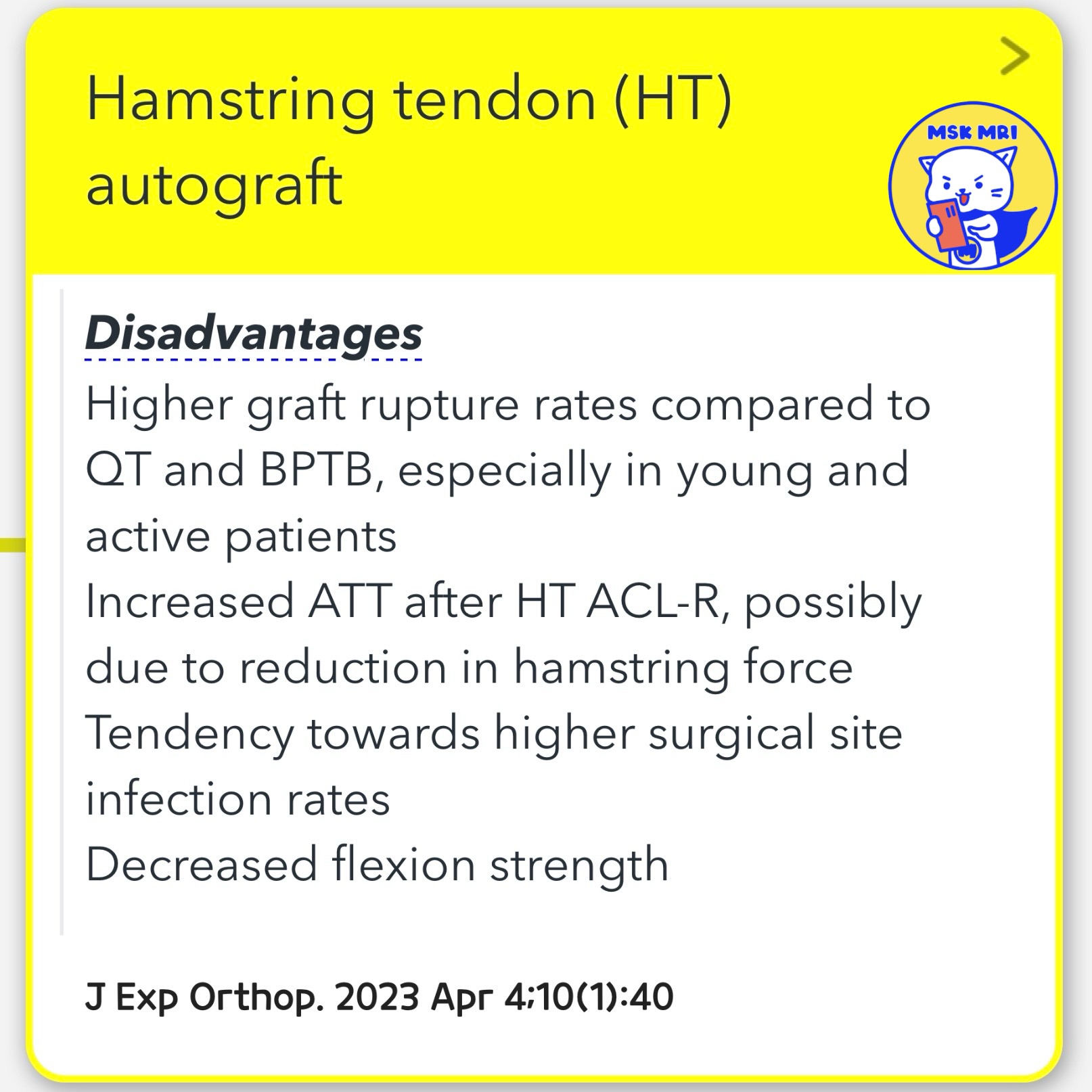 - Higher Graft Rupture Rates: Compared to QT and BPTB, especially in young and active patients.