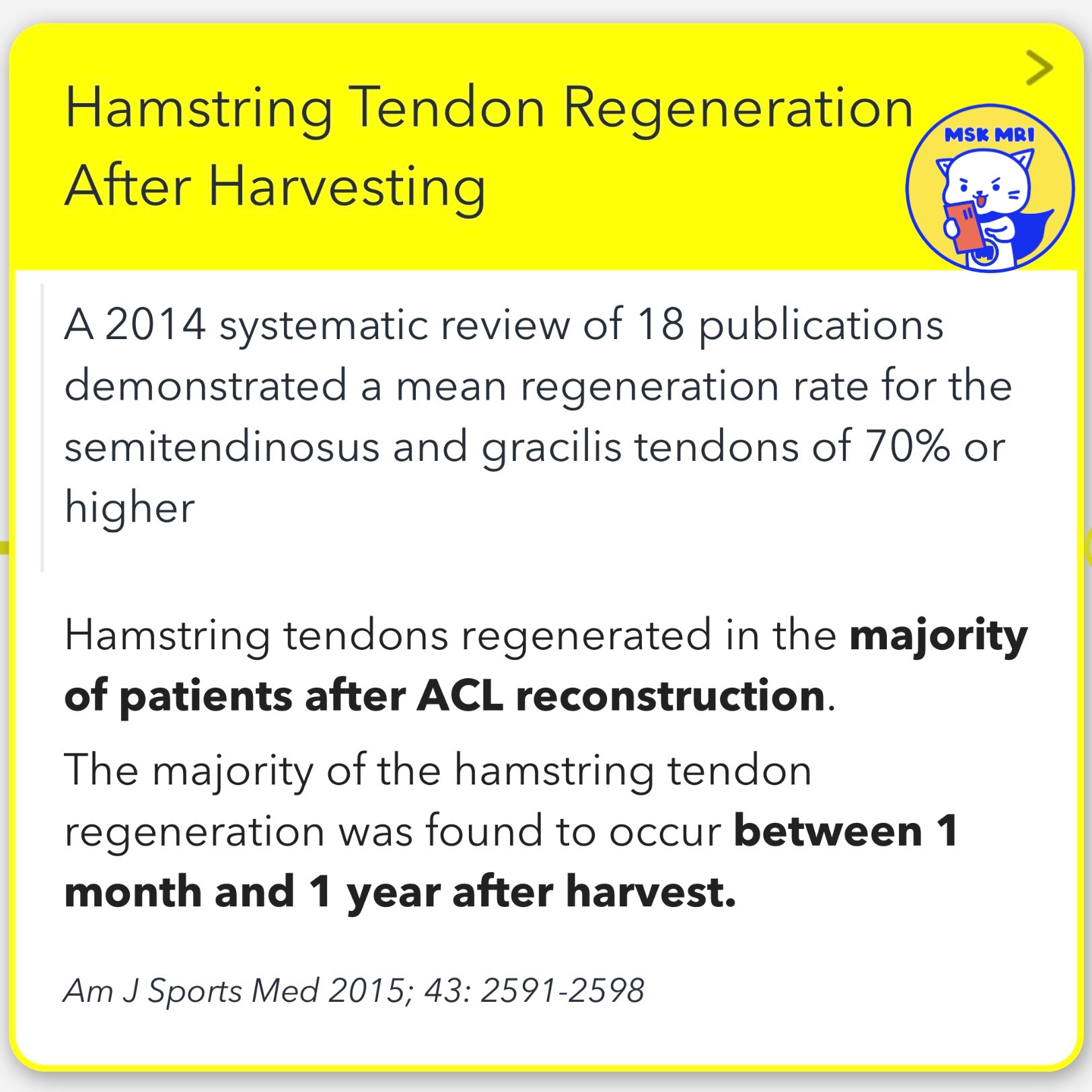 - Hamstring tendons show a 70% or higher regeneration rate after ACL reconstruction.