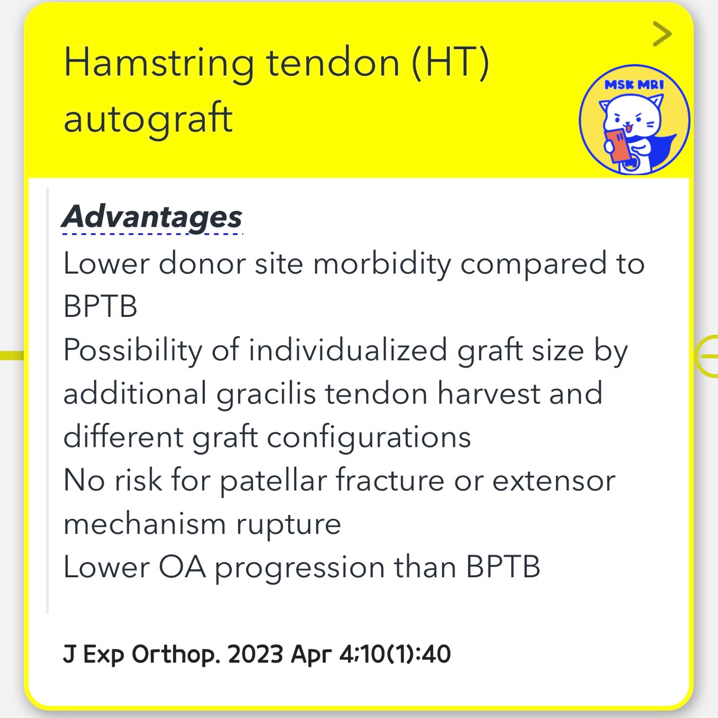 - Lower Donor Site Morbidity: Compared to BPTB grafts.