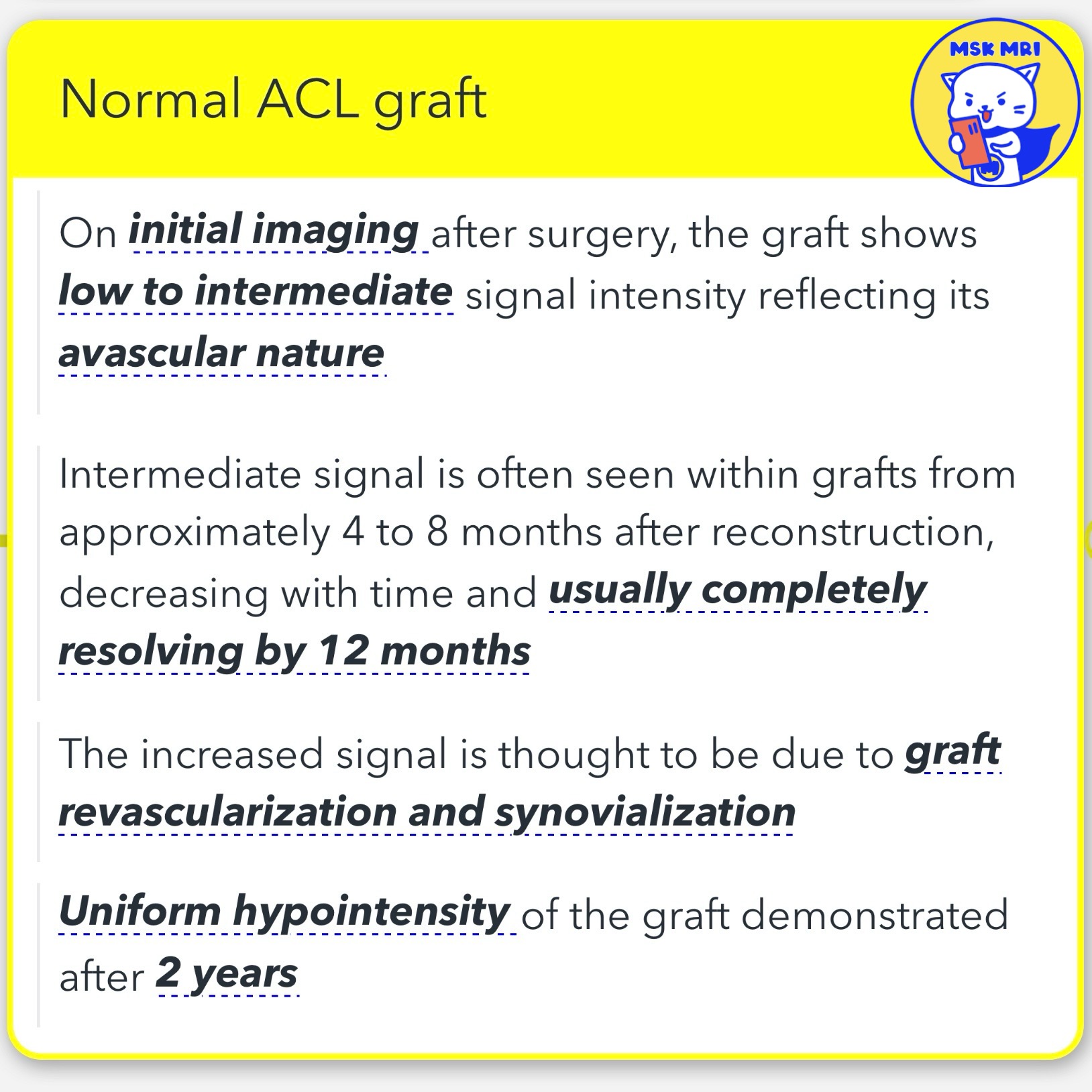 - Within this timeframe, intermediate signal intensity is often observed within grafts.