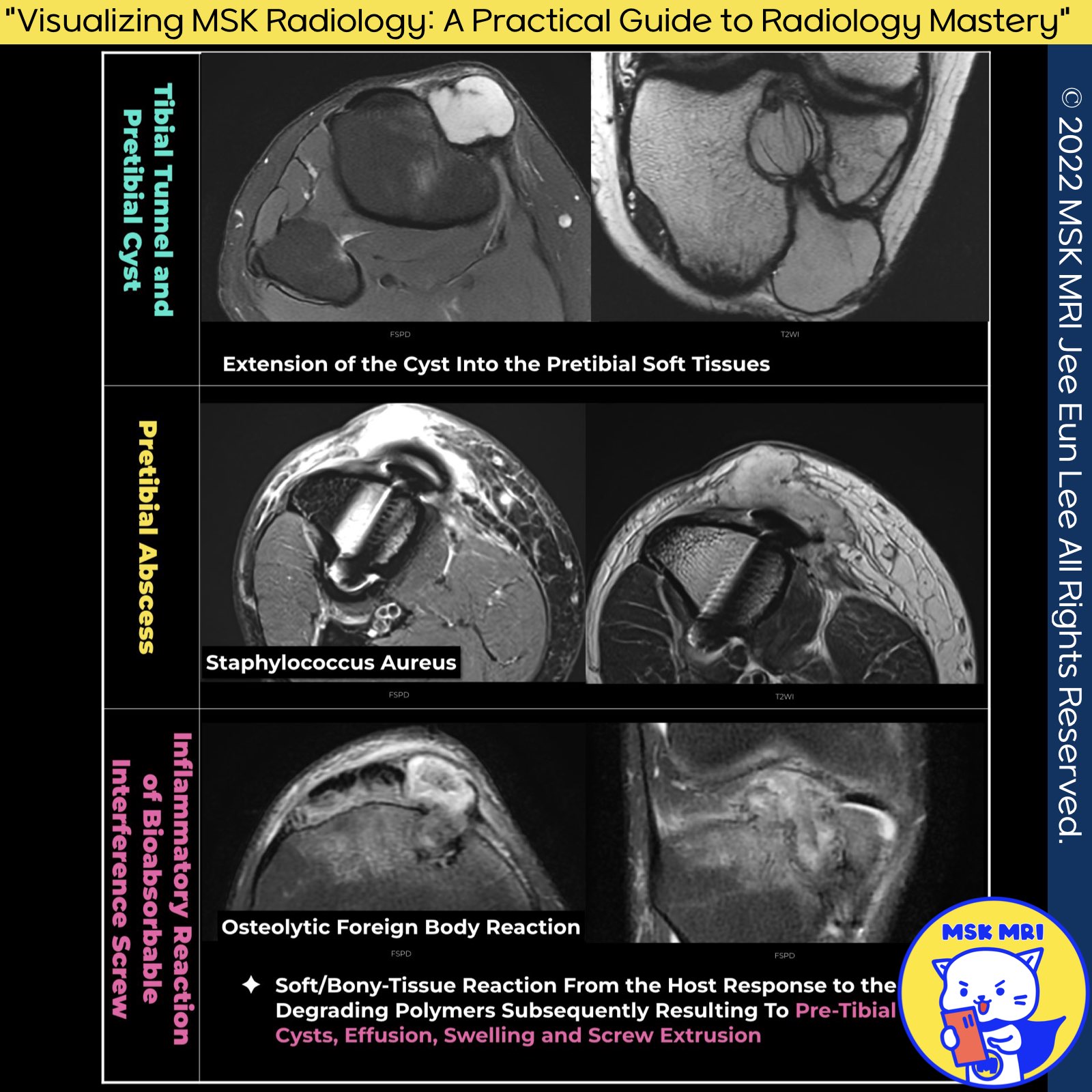 #VisualizingMSK #ACLinjuries #KneeMRI #ACLtear #ACLReconstruction #TibialOsteomyelitis #PostoperativeComplications #PreTibialCysts