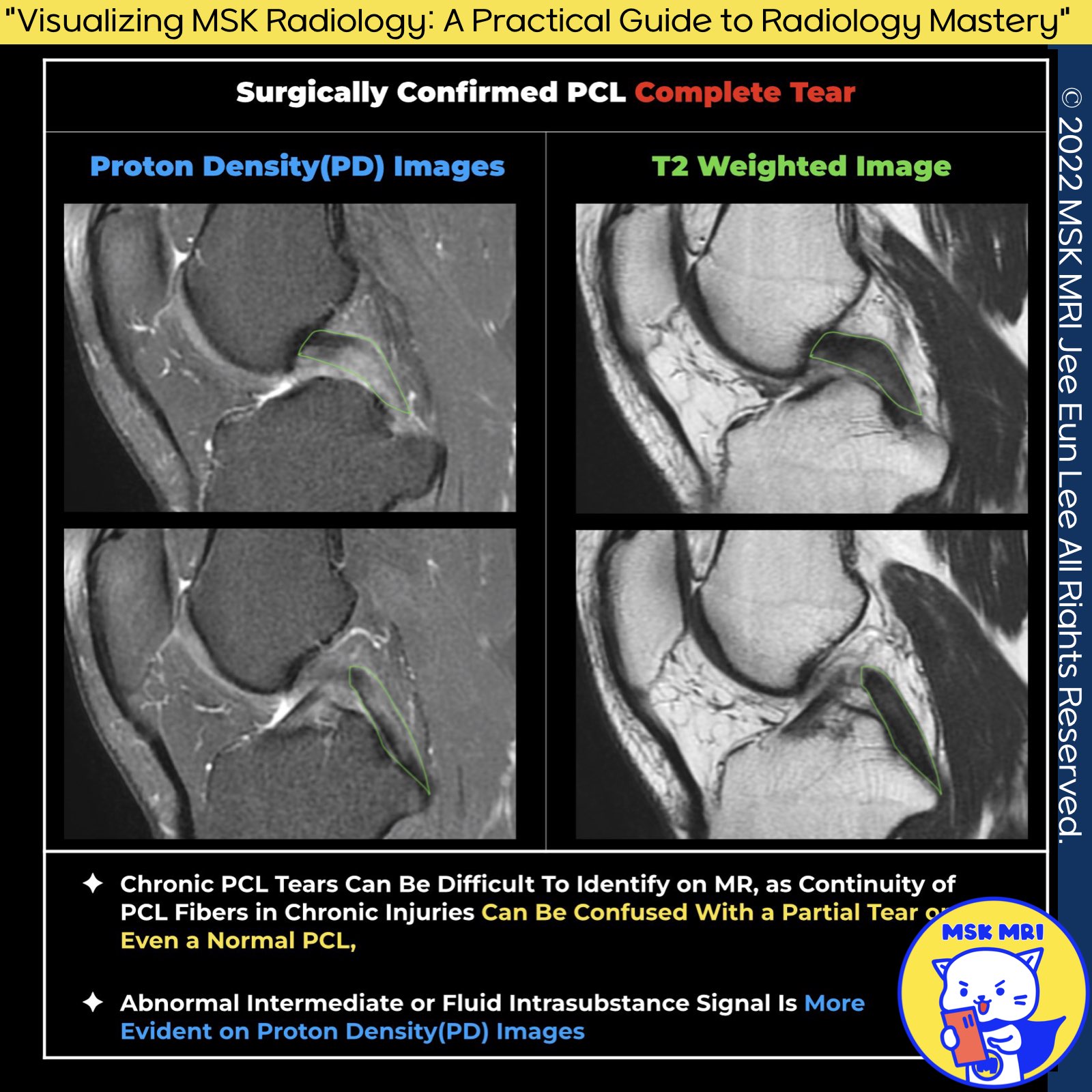 - Chronic tears of the Posterior Cruciate Ligament (PCL) often present subtle signs that can be challenging to detect on MRI.