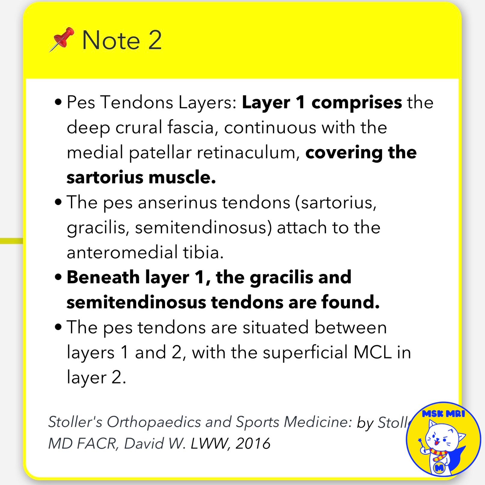 - The pes tendons are situated between layers 1 and 2, with the superficial MCL in layer 2.
