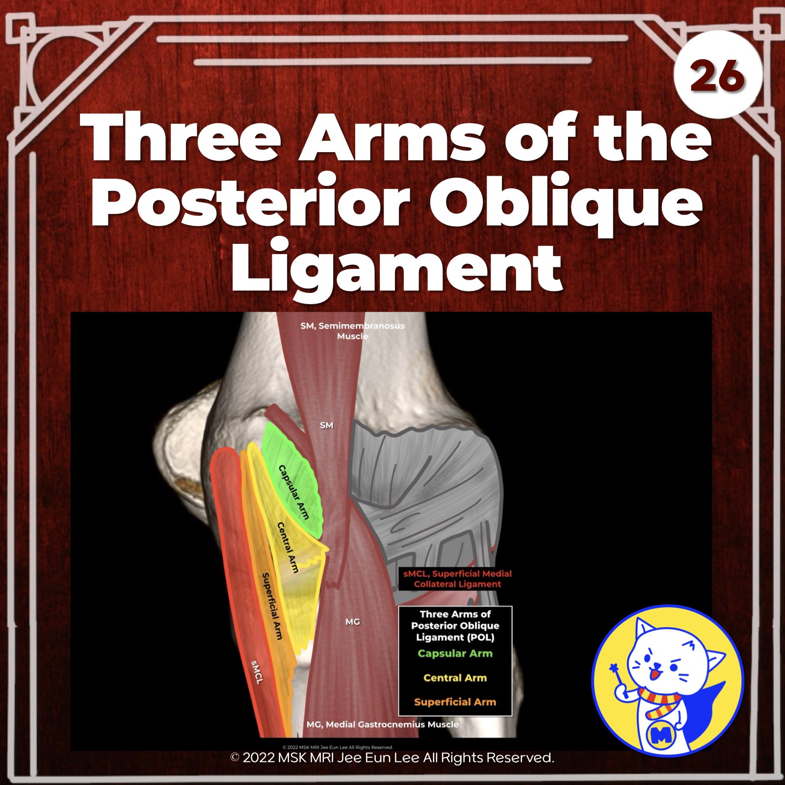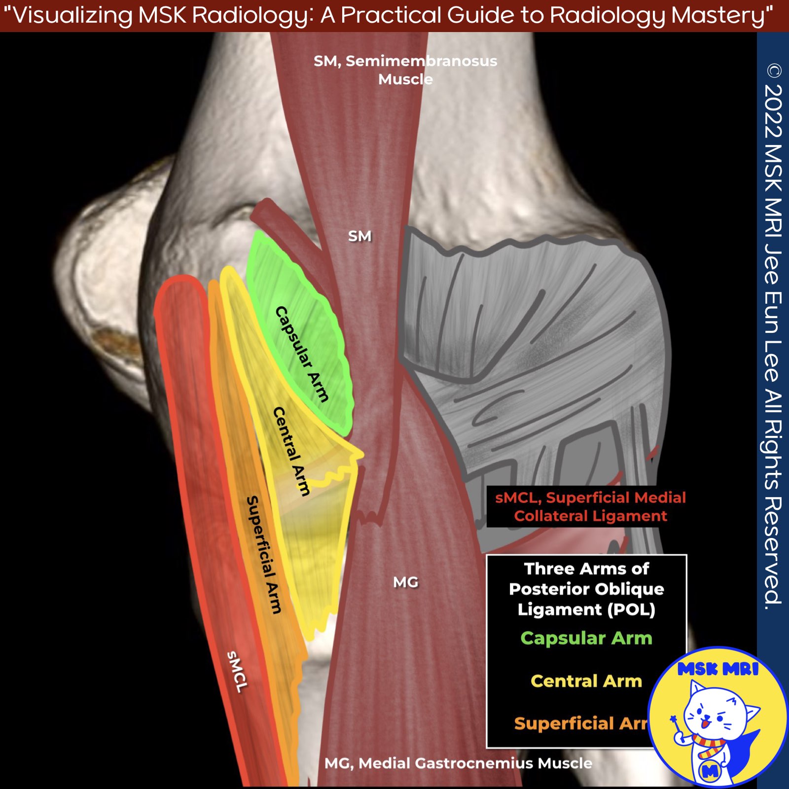 "Visualizing MSK Radiology: A Practical Guide to Radiology Mastery" © 2022 MSK MRI Jee Eun Lee All Rights Reserved. No unauthorized reproduction, redistribution, or use for AI training. #PMC, #POL, #Posteriorobliqueligament, #kneeMRI, #Kneeanatomy, #anatomyKnee,