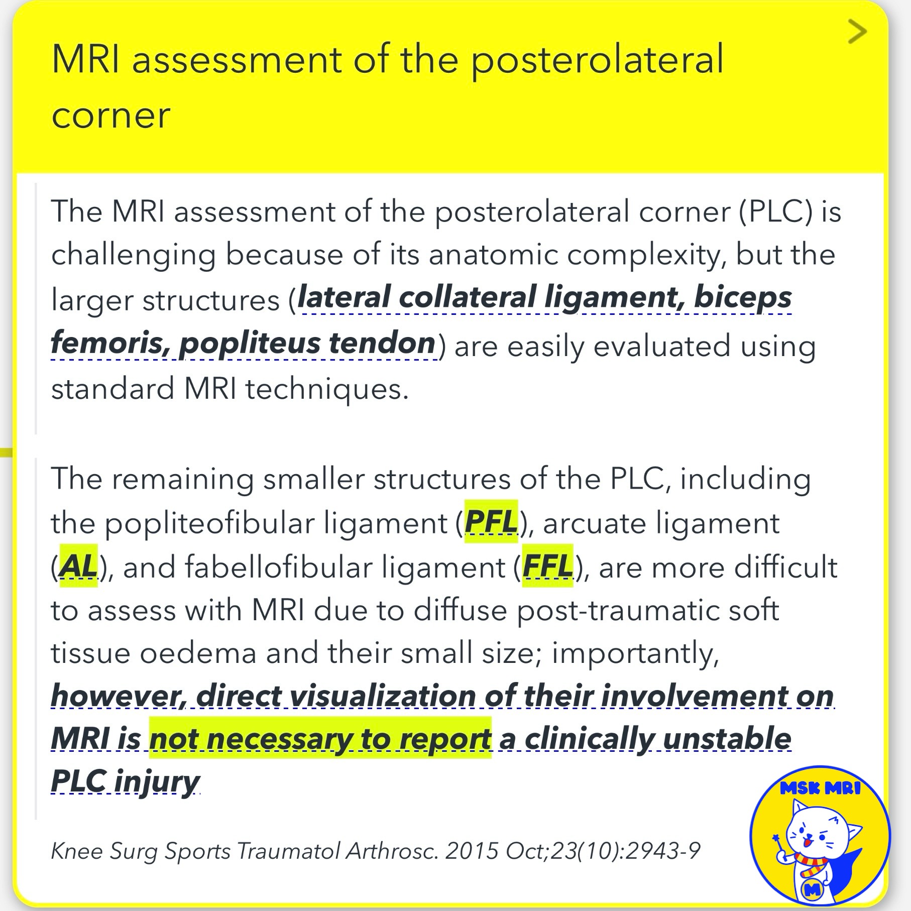 - Isolated injuries to the posterolateral corner (PLC) of the knee are rare.
