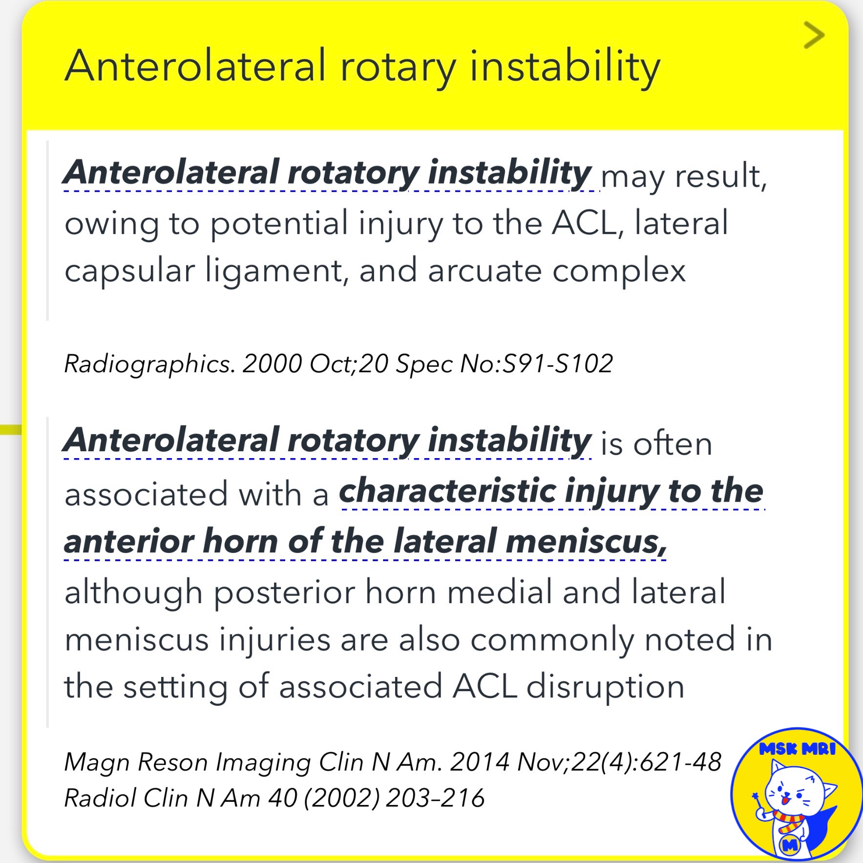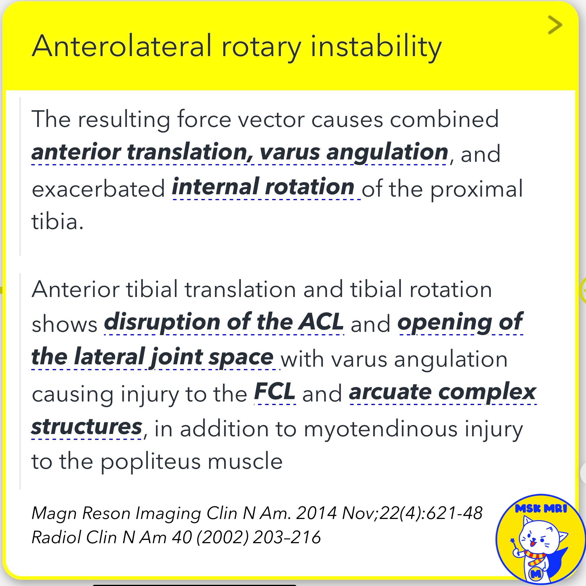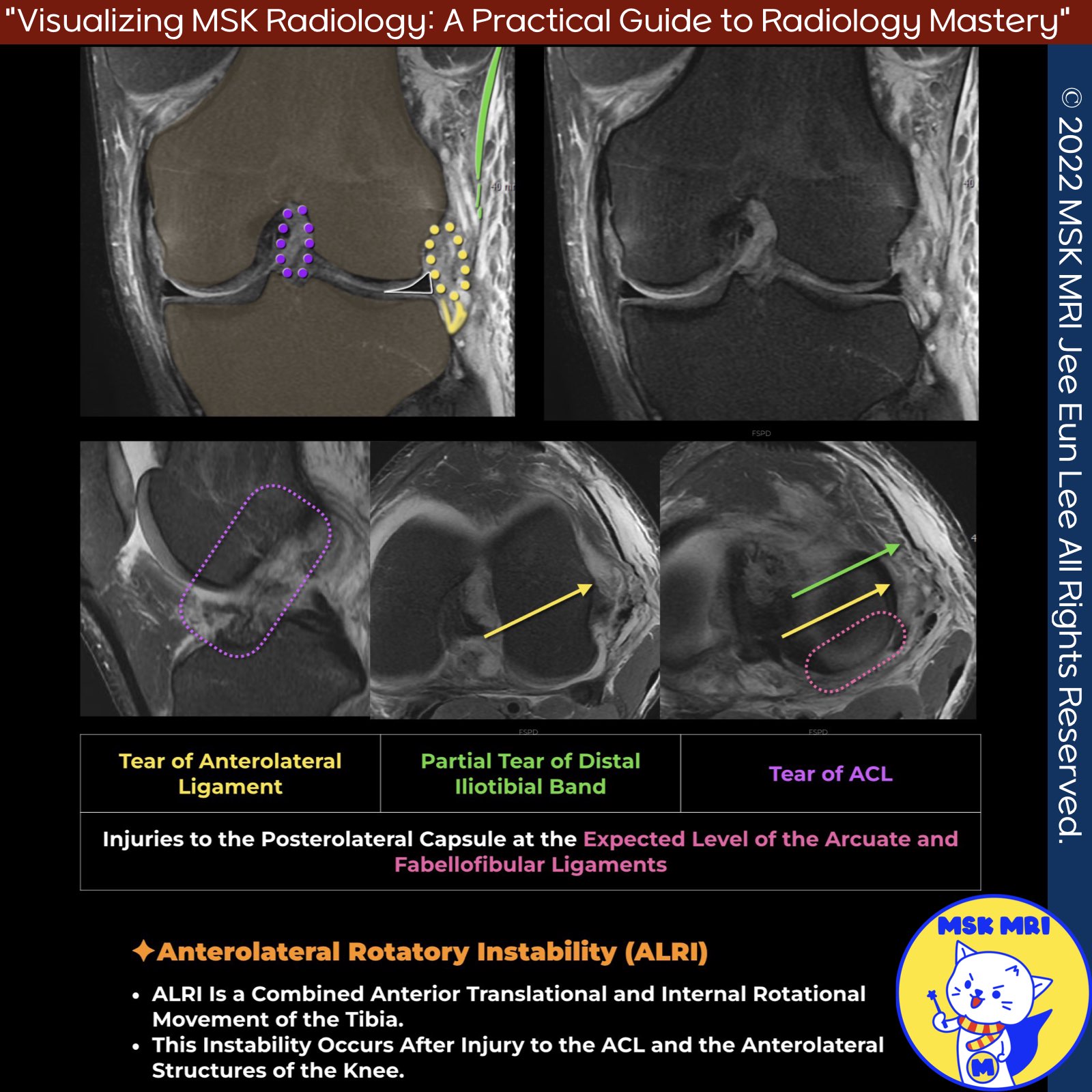 - ALRI is a combined anterior translation and internal rotation movement of the tibia that occurs after injury to the ACL and anterolateral structures of the knee like the lateral capsular ligament and arcuate complex