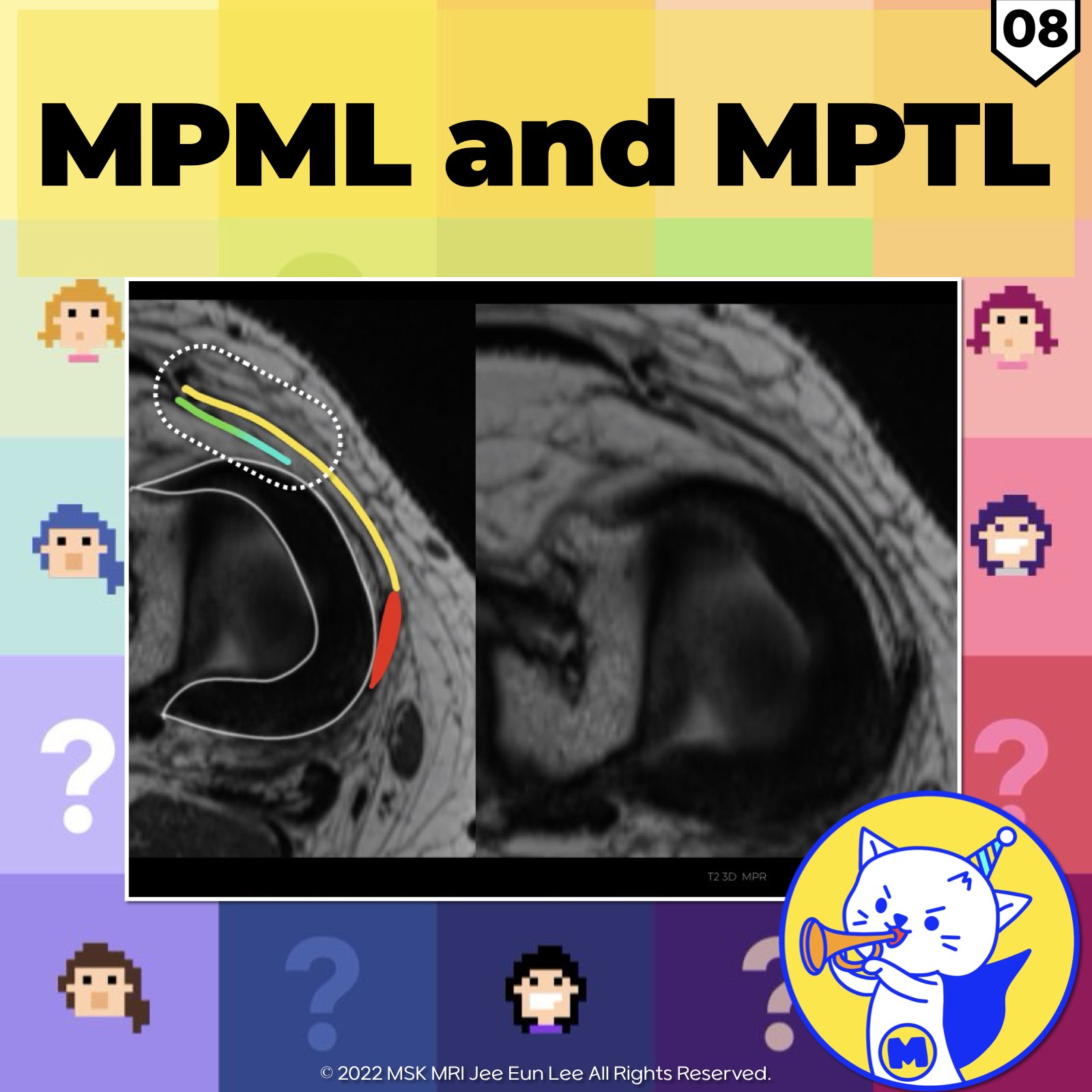 The MPML and MPTL extend from the inferomedial patella to the medial meniscus and anteromedial tibia, respectively. Despite being considered secondary stabilizers, these ligaments significantly contribute to resisting lateral patellar translation, tilt, and rotation during knee flexion. MPFL reconstructions may now be combined with MPTL reconstruction for patients with patellar instability (Radiographics. 2023 Jun;43(6)