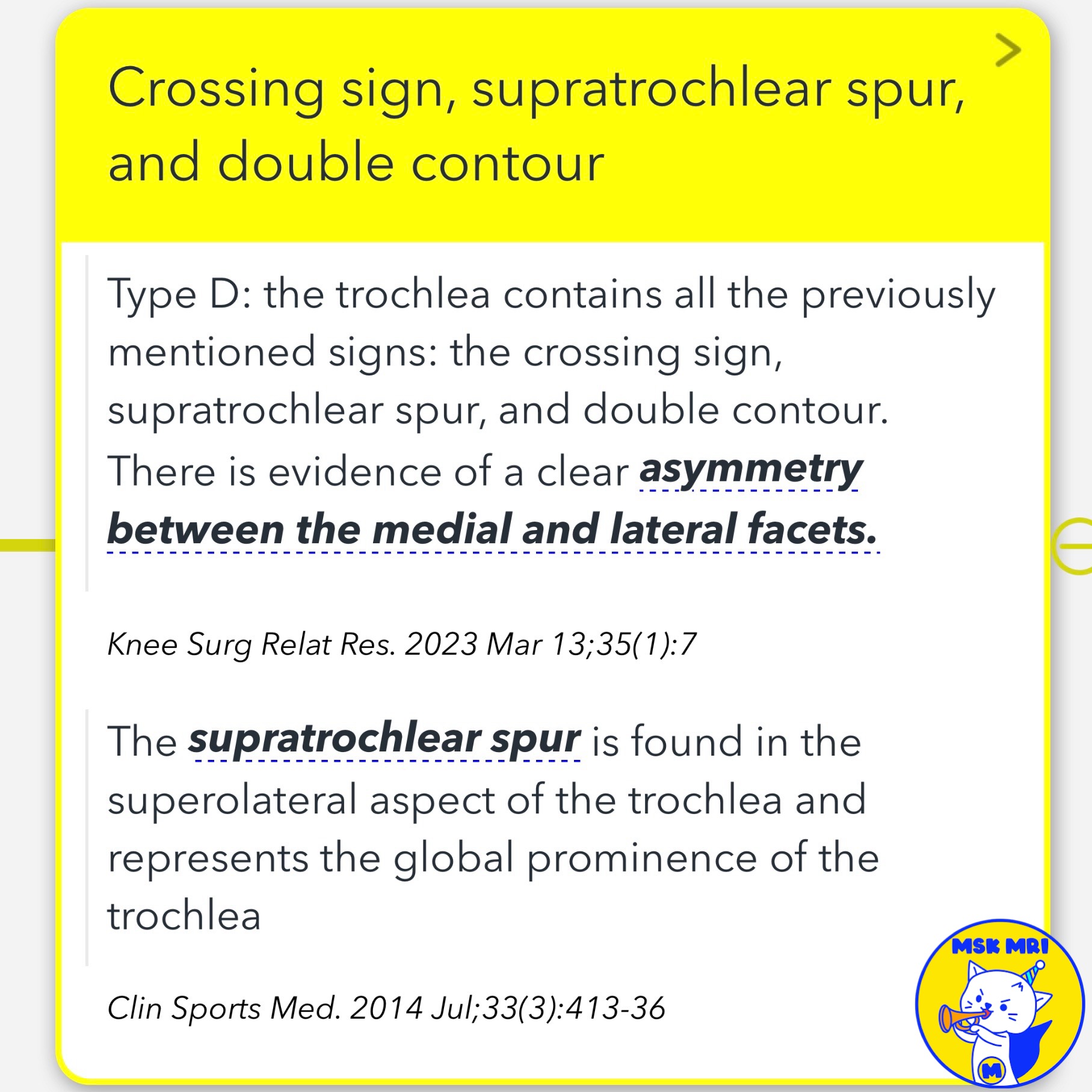 #TrochlearDysplasia, #DejourClassification, #CrossingSign, #DoubleContourSign, #SupratrochlearSpur, #LateralRadiograph, #PatellaDislocation, #KneeAnatomy, #OrthopedicRadiology, #MedicalEducation