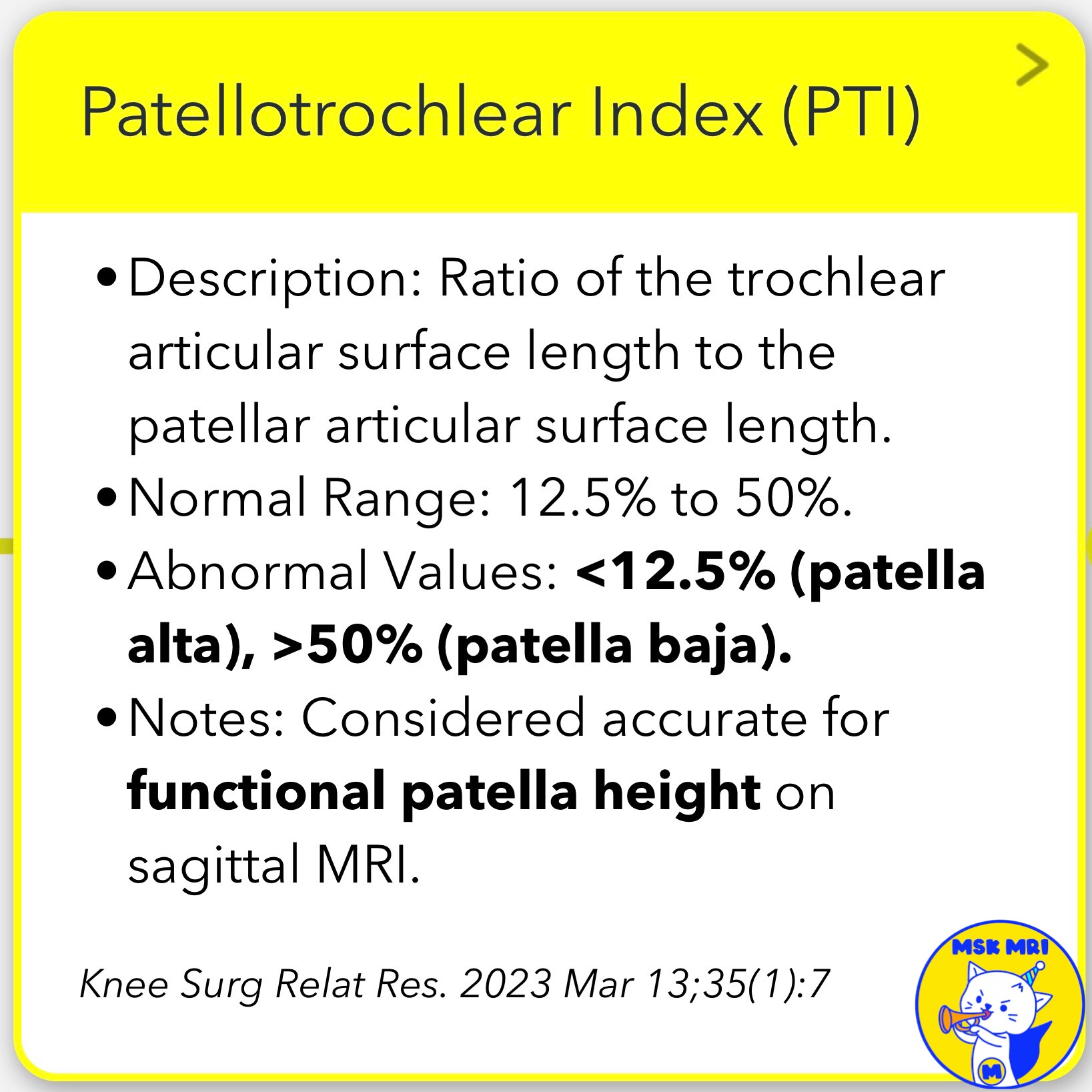 - Notes: Considered accurate for functional patella height on sagittal MRI.