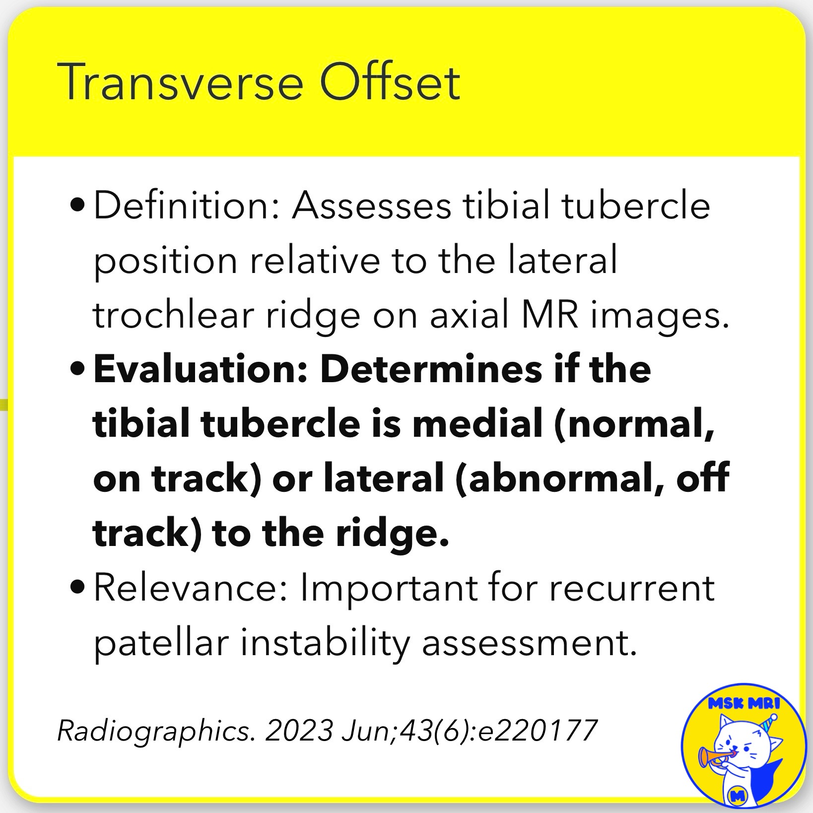 - Definition: Assesses tibial tubercle position relative to the lateral trochlear ridge on axial MR images.