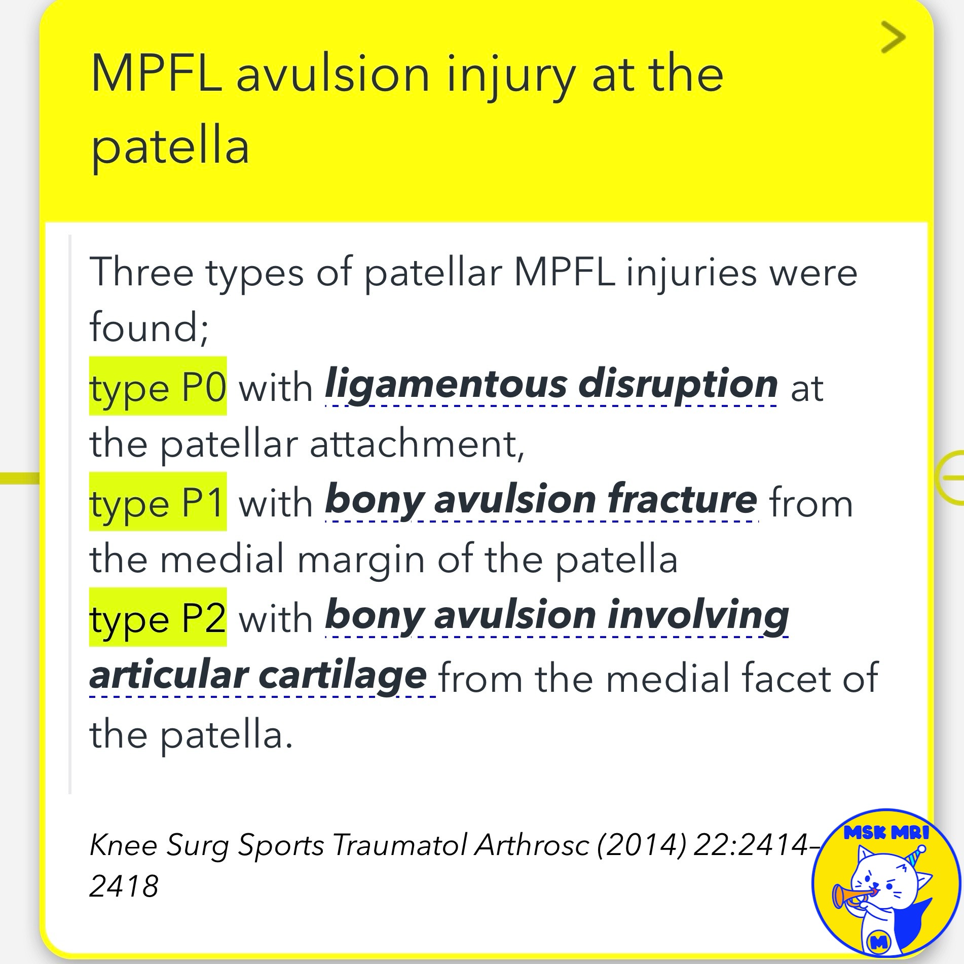 #MPFL, #PatellarAvulsionInjury, #KneeInjury, #PatelloFemoralJoint, #OrthopedicSurgery, #MRI, #SkeletalImmaturity, #LigamentousInjury, #AvulsionFracture, #ArticularCartilageInjury.