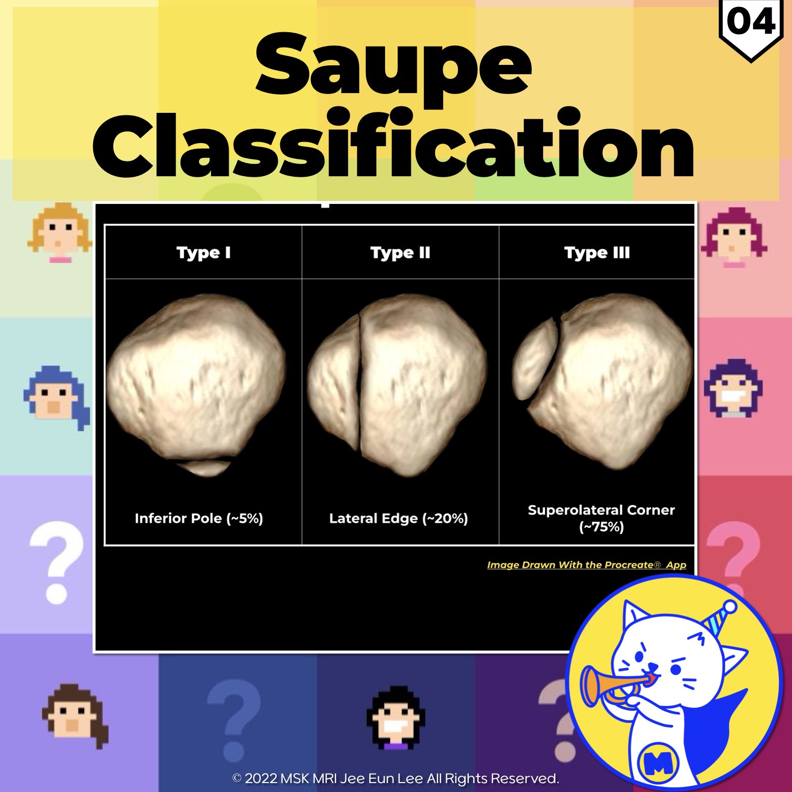 Bipartite patella is categorized by the Saupe classification based on the location of the accessory ossification center: