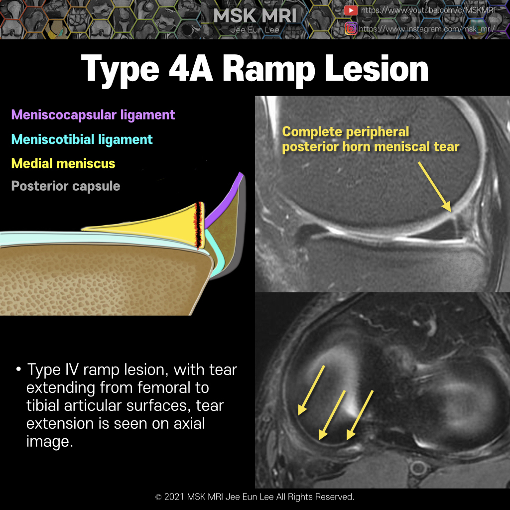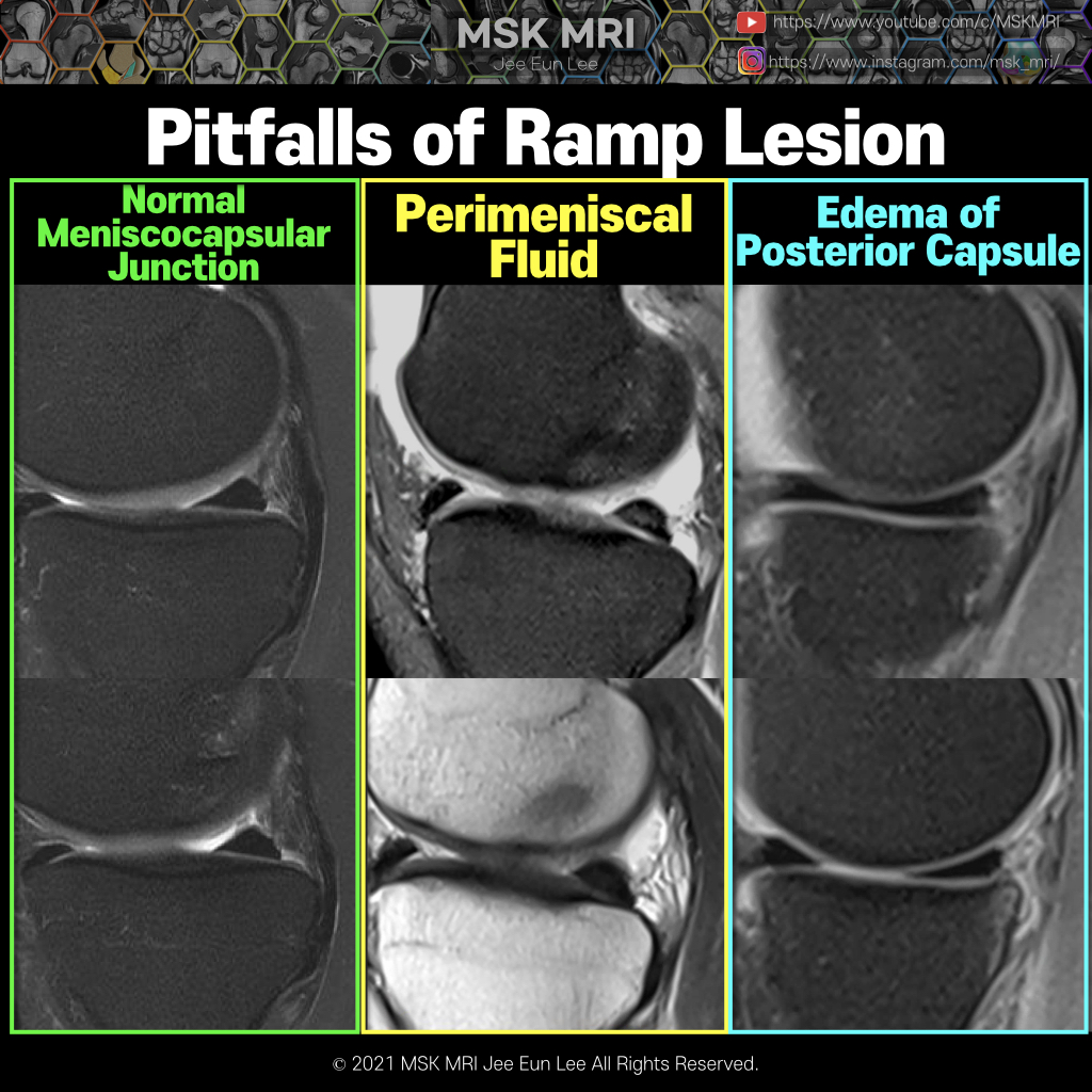 Ramp lesion, Meniscal tear, Medial meniscus, Meniscocapsular, meniscotibial ligament, ACL injury [Ramp lesion_01] Anatomy of posterior Medial meniscus, Meniscocapsular, meniscotibial ligament [Ramp lesion_02] Diagnosis and Imaging findings [Ramp lesion_03] Diagnosis and Imaging findings [Ramp lesion_04] Pitfalls, Ramp lesion, Meniscocapsular separation, ACL injury, https://youtu.be/KxIT6iUBb0o ..