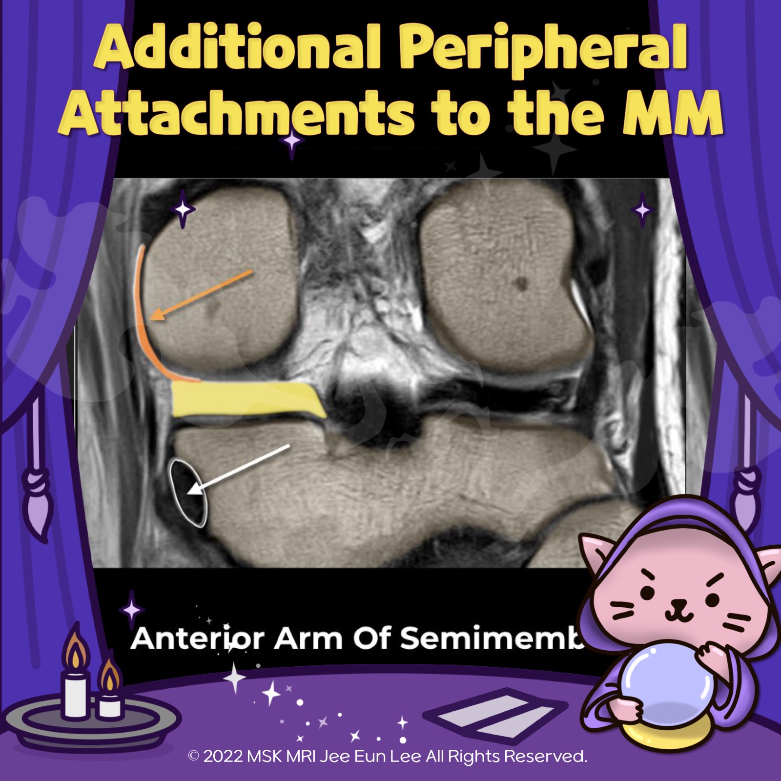 https://youtu.be/oSrgEkMQl3w https://youtu.be/kEuMzUrHD0MAspectDetailsLigament TypeOblique Meniscomeniscal Ligaments (Intermeniscal Ligament)Prevalence1% to 4%LocationTransverse the intercondylar notch between the anterior and posterior cruciate ligamentsNamingBased on anterior attachment sitesMedial OMMLOriginates from the anterior horn of the medial meniscus extends through the intercondylar n..