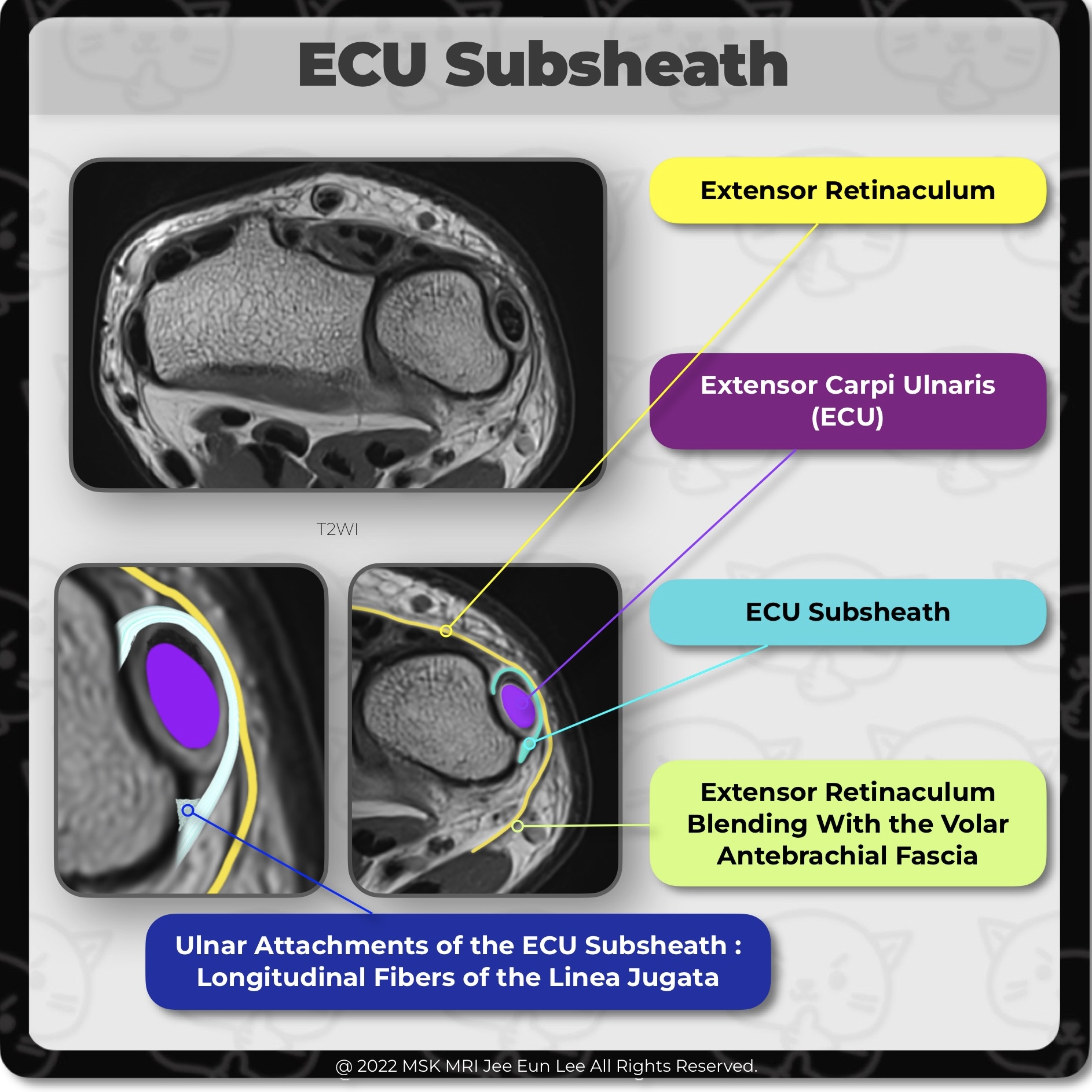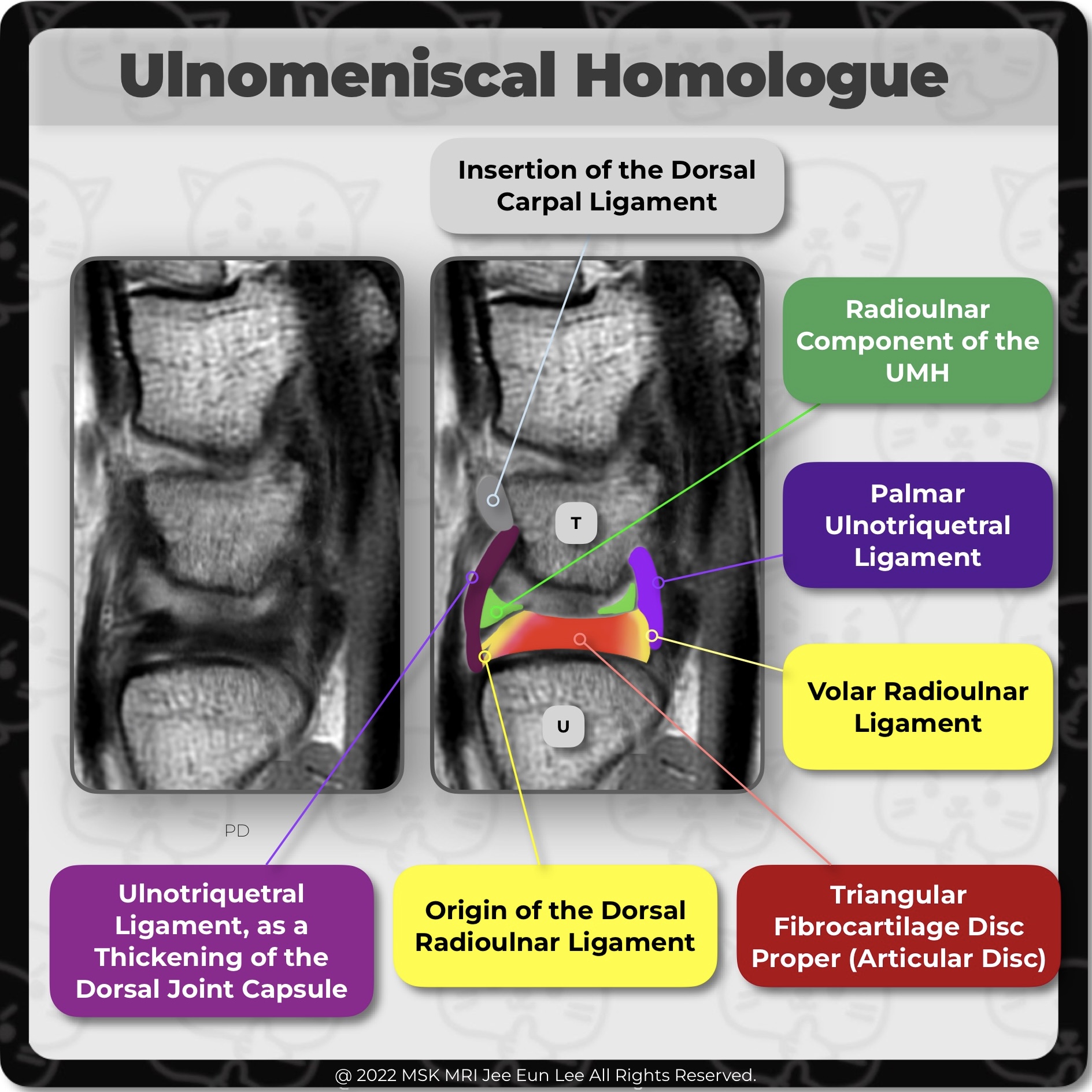 The prestyloid recess is a synovial-lined pouch with a direct connection to the rest of the radiocarpal compartment. It is most commonly a saccular space bordered by the meniscal homologue distally, the TFCC attachments to the ulnar styloid process proximally, and the central TFCC disk radially There are several variations in the shape of the prestyloid recess. Prestyloid recess is best seen on ..
